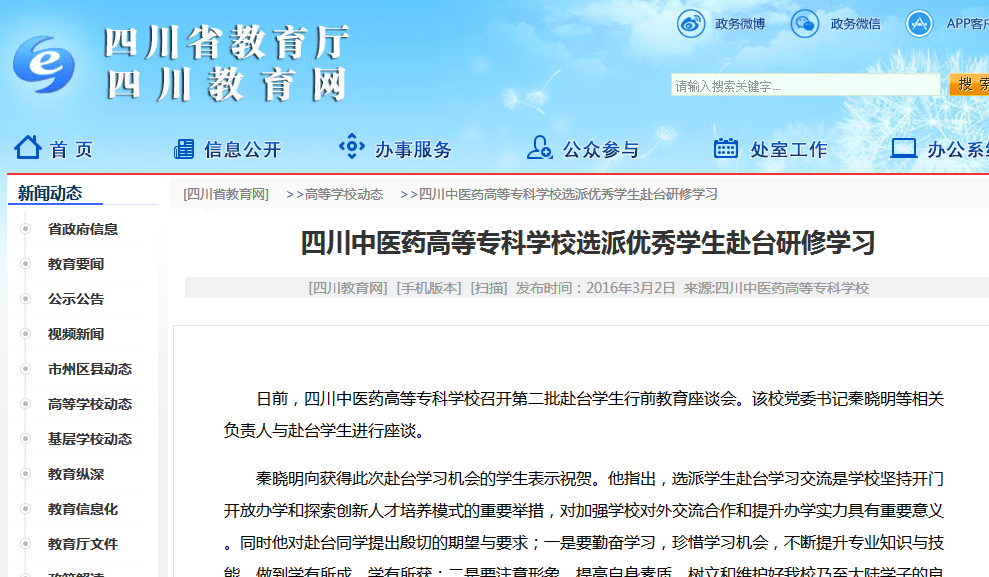 日前,四川中医药高等专科学校召开第二批赴台学生行前教育座谈会。该校党委书记秦晓明等相关负责人与赴台学生进行座谈。