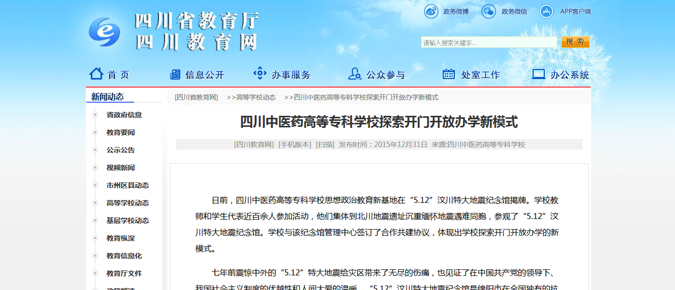上一篇: 四川在线:四川中医药高等专科学校探索开门开放办学新模式