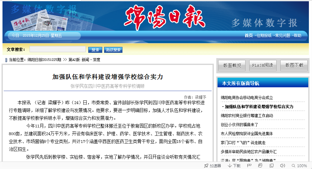绵阳日报:加强队伍和学科建设增强学校综合实力