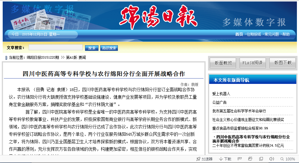下一篇: 绵阳新闻网:四川中医药高等专科学校开展医养结合项目受肯定