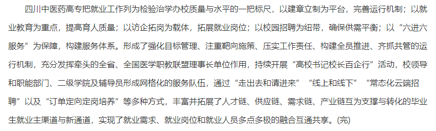 上一篇: 四川中医药:四川中医药高专五举措推动就业工作双轮驱动