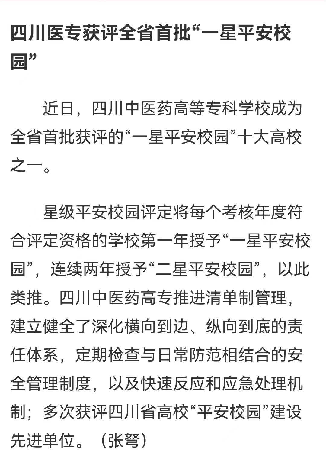 下一篇: 今日头条:四川医专获评四川省“一星平安校园”