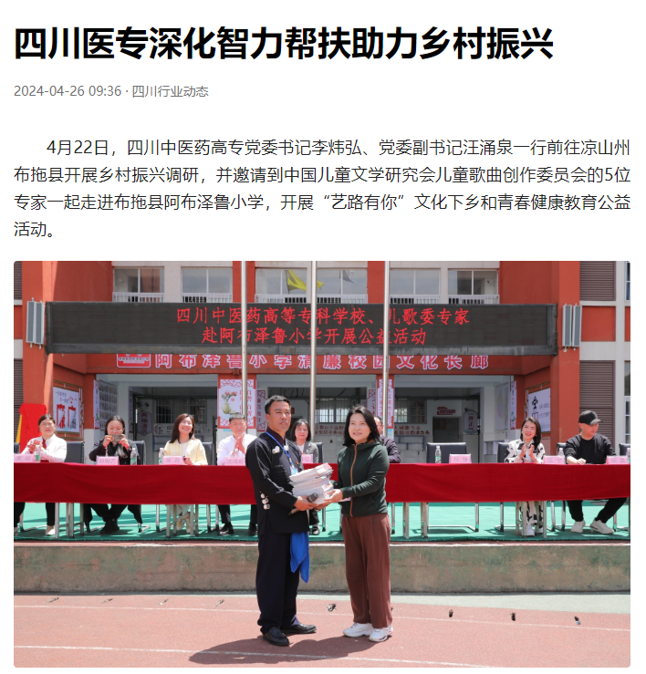 上一篇: 中国新闻网:四川医专:深化智力帮扶 助力乡村振兴