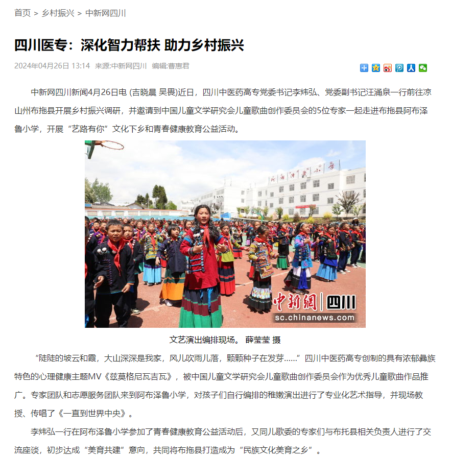下一篇: 今日头条:四川医专深化智力帮扶助力乡村振兴