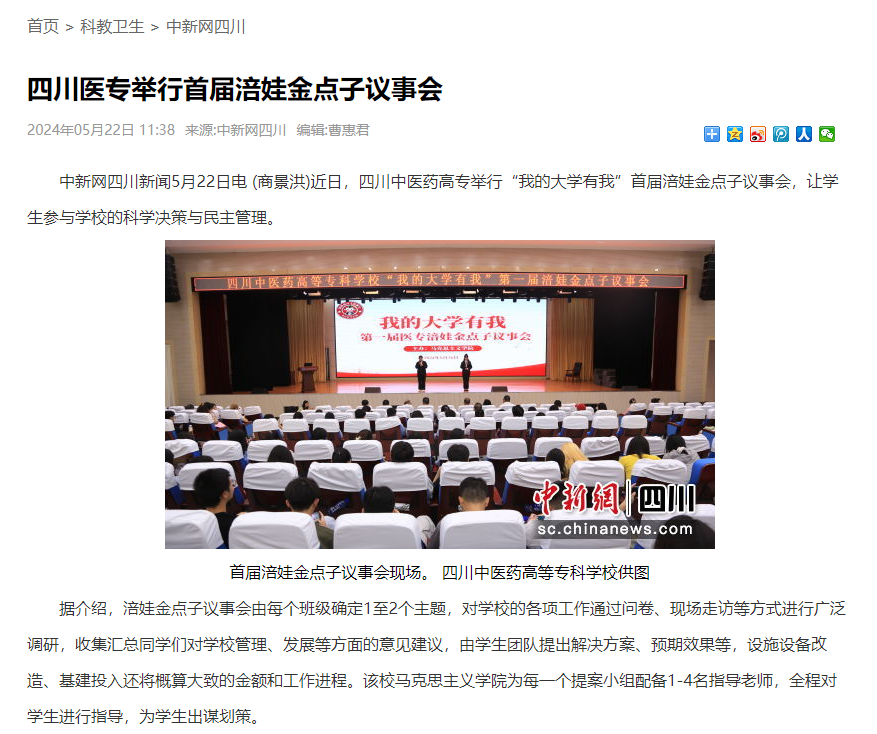 上一篇: 中华网:四川医专学子荣获第十四届四川省“挑战杯”创业计划竞赛金奖