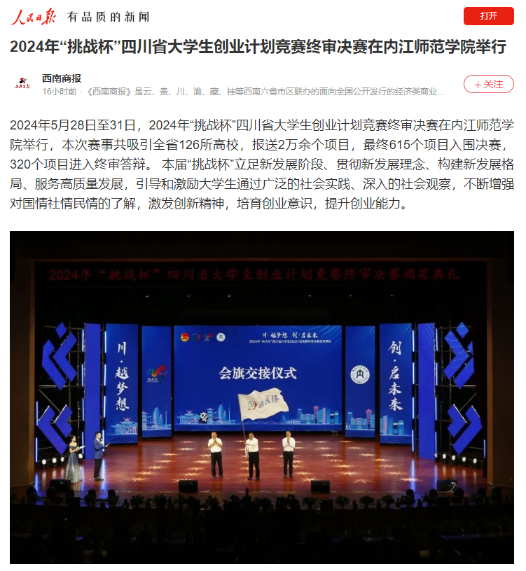 下一篇: 中华网:四川医专学子荣获第十四届四川省“挑战杯”创业计划竞赛金奖