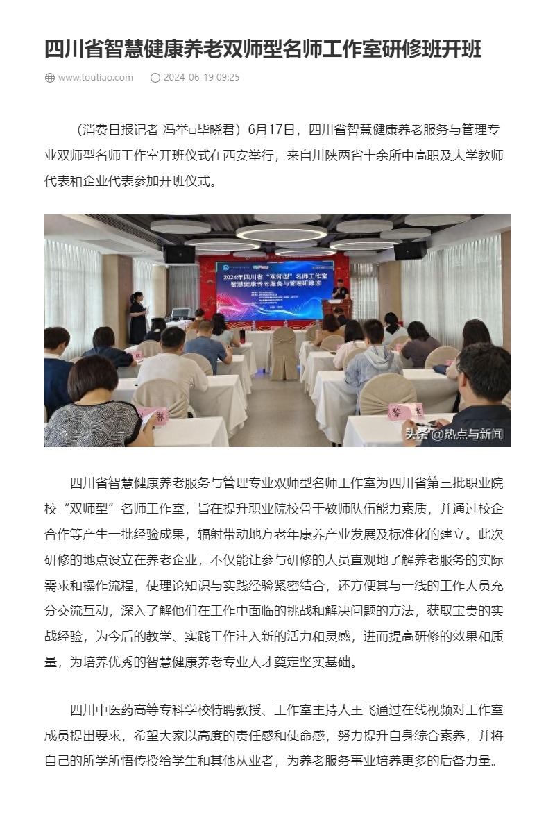 上一篇: 消费日报:四川省智慧健康养老双师型名师工作室研修班开班