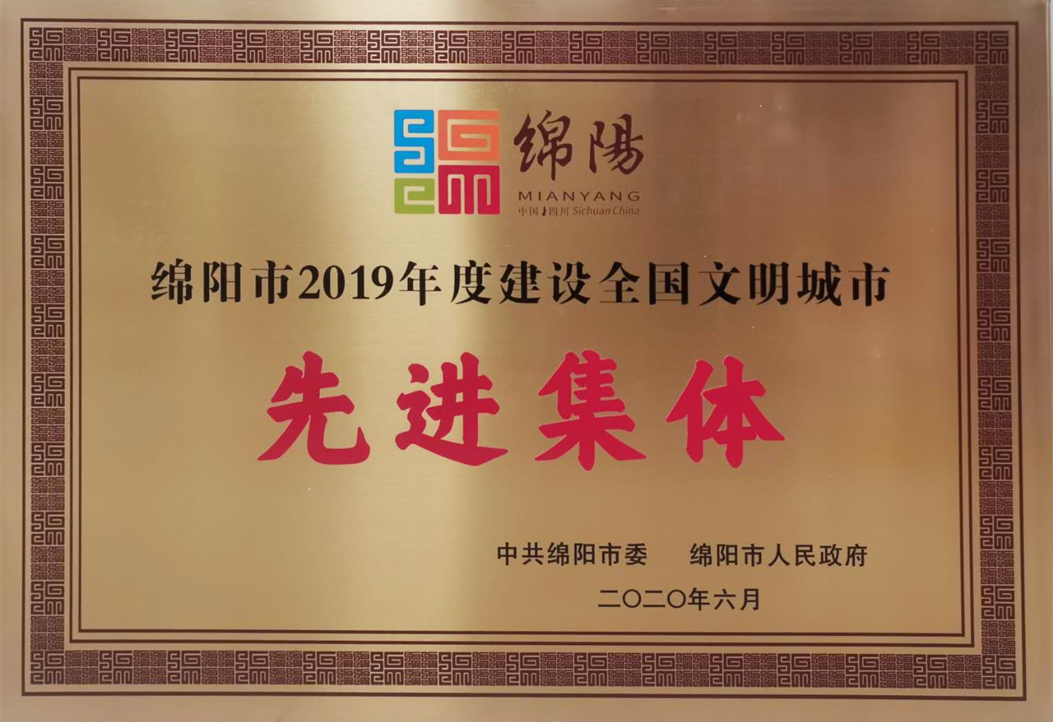 我校荣获绵阳市2019年度建设全国文明城市先进集体。