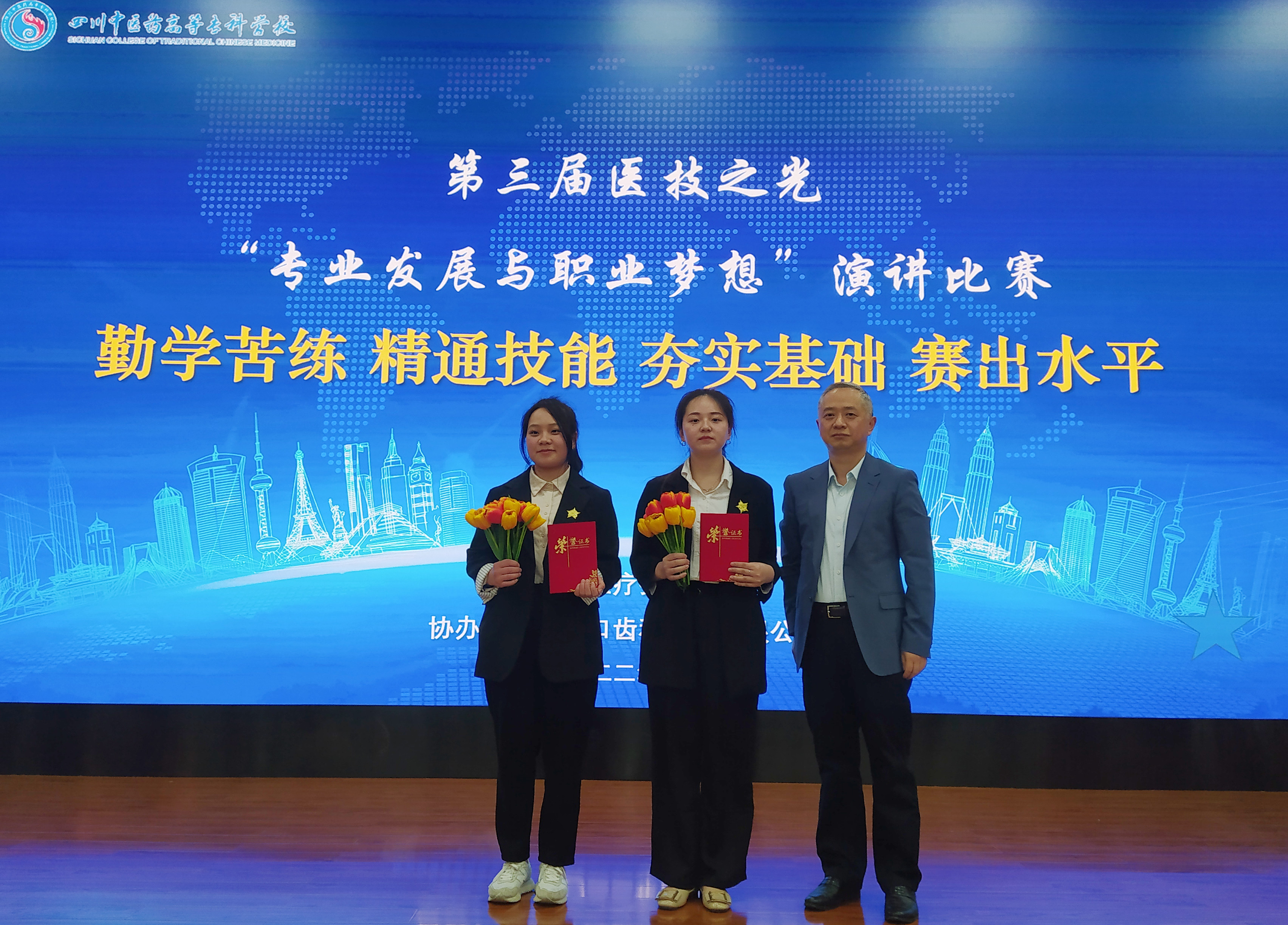 4月20日,医疗技术学院举办了第三届“医技之光”文化竞赛活动开幕式暨“专业发展与职业梦想”演讲决赛,本次竞赛活动包括专业讲座、专业竞技和专业梦想演讲三个板块,该学院200余名学子将在4-6月期间分别参加各专业比赛项目,共同竞技,促进学院形成良好的学习和竞争氛围,促进医技学子全面发展。在“专业发展与职业梦想”演讲比赛决赛中,2021级单招医学影像技术的王凤兰和2021级单招医学检验技术陈广容同学荣获演讲比赛一等奖,校纪委书记李文虎为她们颁奖。