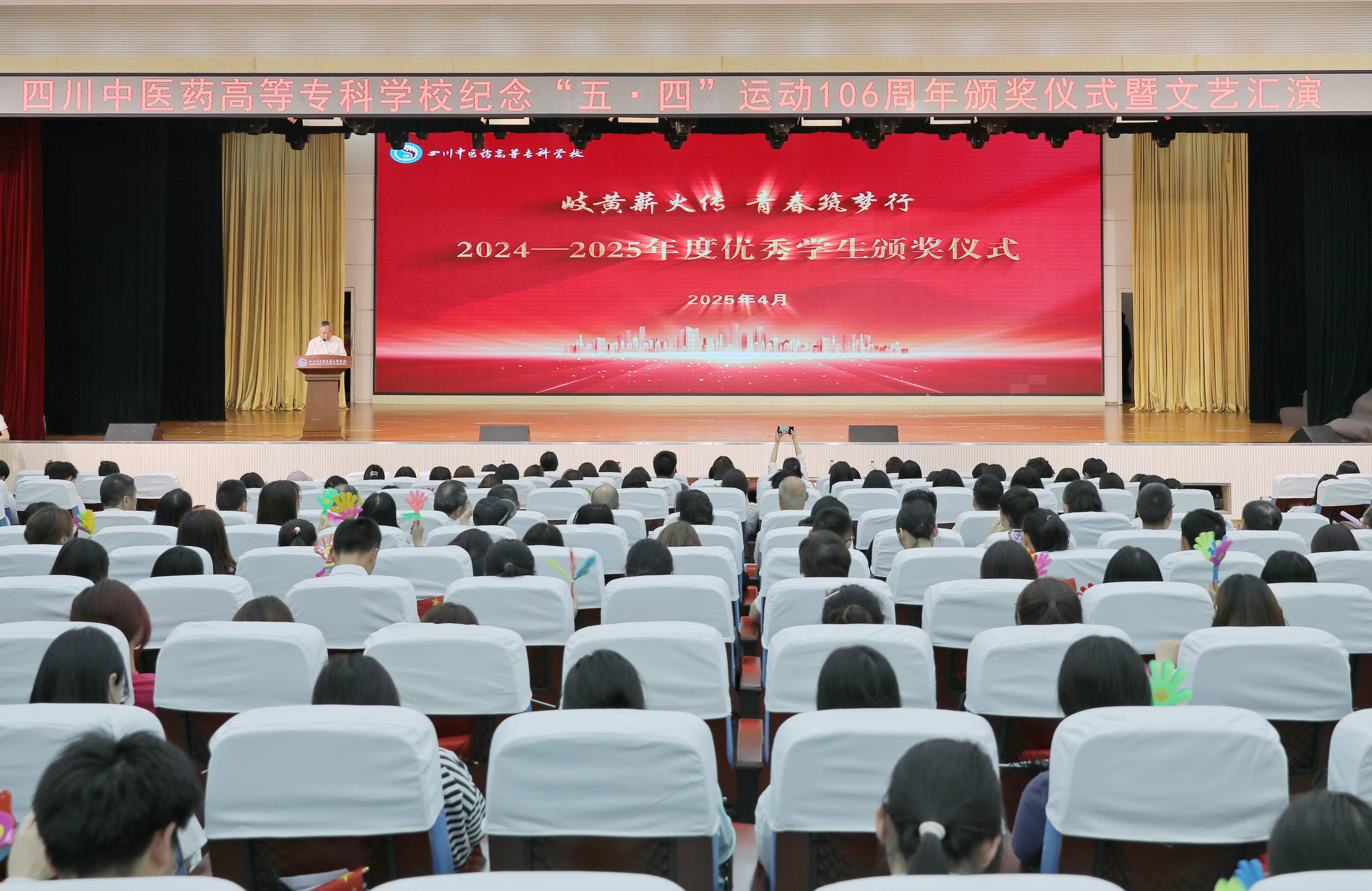4月28日,我校举行纪念五四运动106周年颁奖典礼暨文艺汇演。大会表彰了获得国家奖学金、励志奖学金、“东方奖学金”“厚德勤学奖学金”、优秀学生干部、优秀共青团干部等先进个人和五四红旗团总支、青年志愿者先进集体、先进班集体等先进集体。全体校领导,校外嘉宾和中层干部及线上线下师生代表上千人参加。