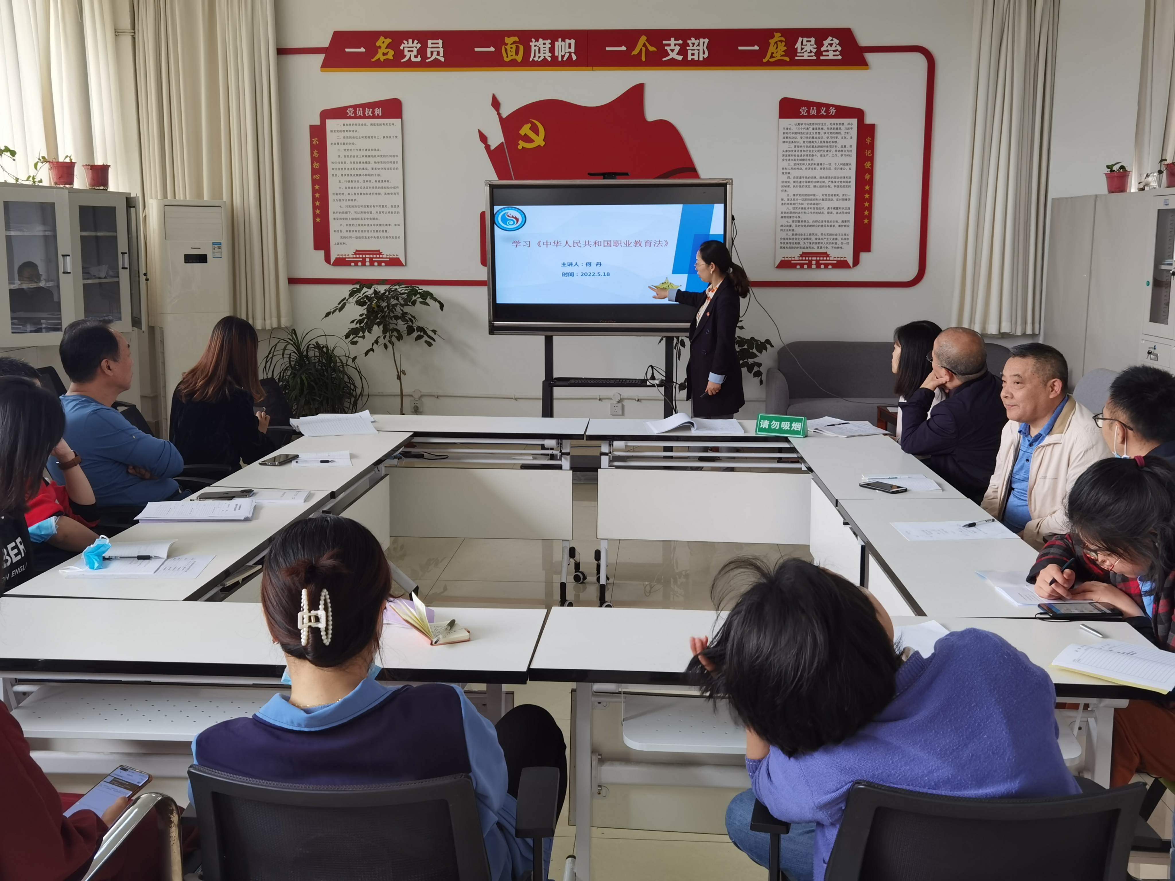 2022年5月18日,医疗技术学院组织开展《中华人民共和国职业教育法》集体学习活动,学院党总支书记林芝、院长何丹、副院长王立立及全体教职工参加。