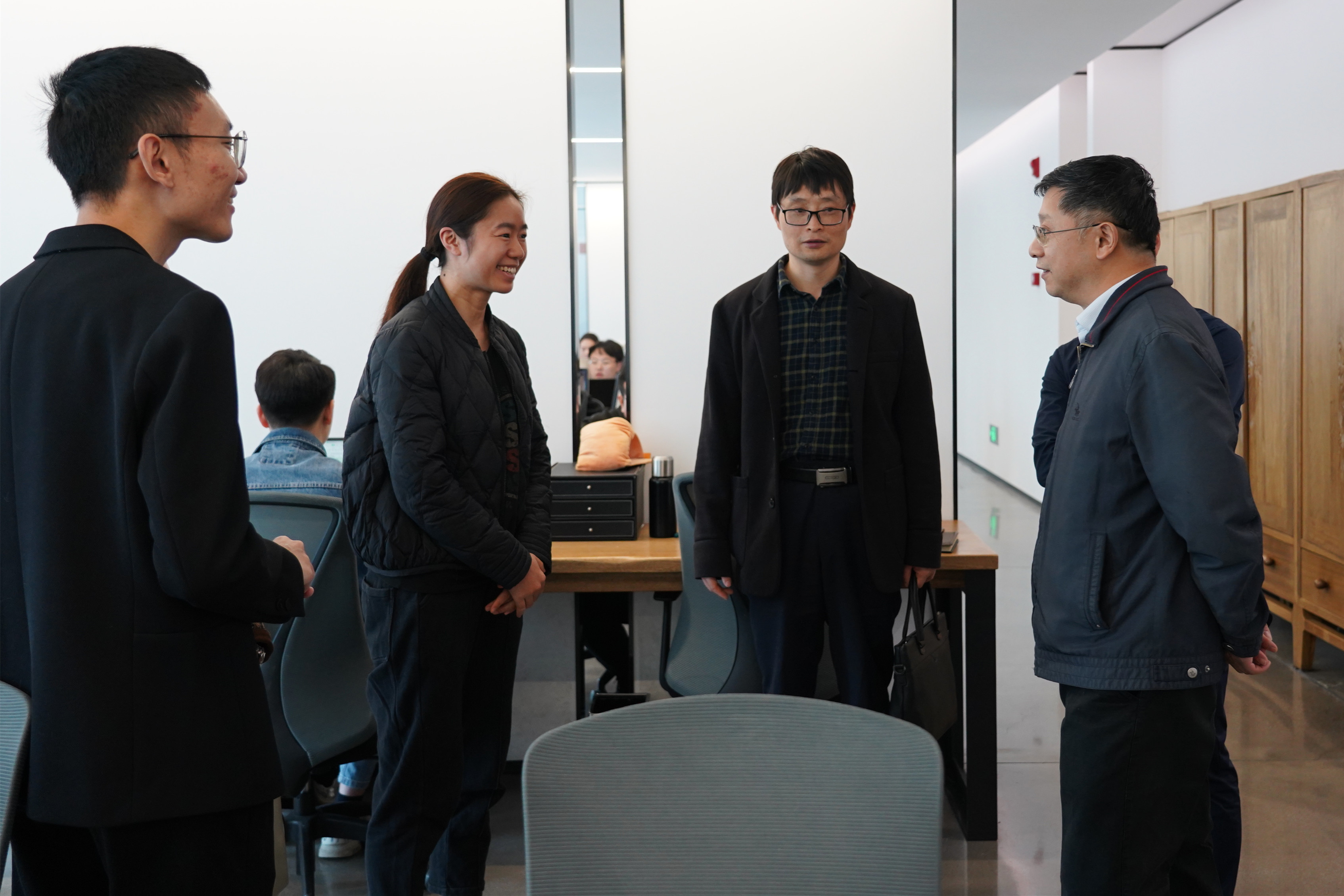 王飞还看望了在公司就业的我校毕业生和实习的2020级同学,关切地询问了实习及生活情况,鼓励她们努力学习,加强实践,早日岗位成才。