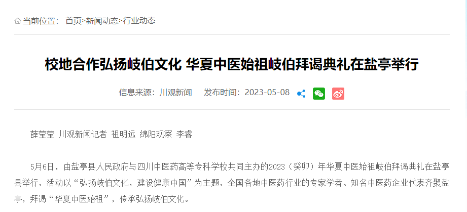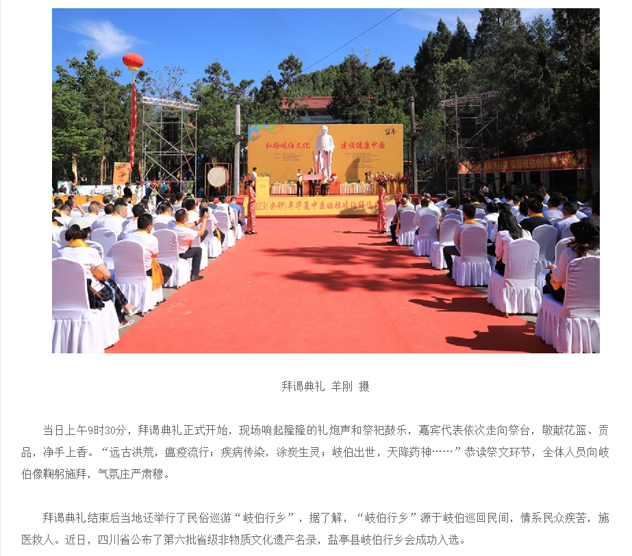 上一篇: 中央广电总台国际在线:弘扬岐伯文化 建设健康中国 2023年华夏中医始祖岐伯中医药发展研讨会在绵阳盐亭举行