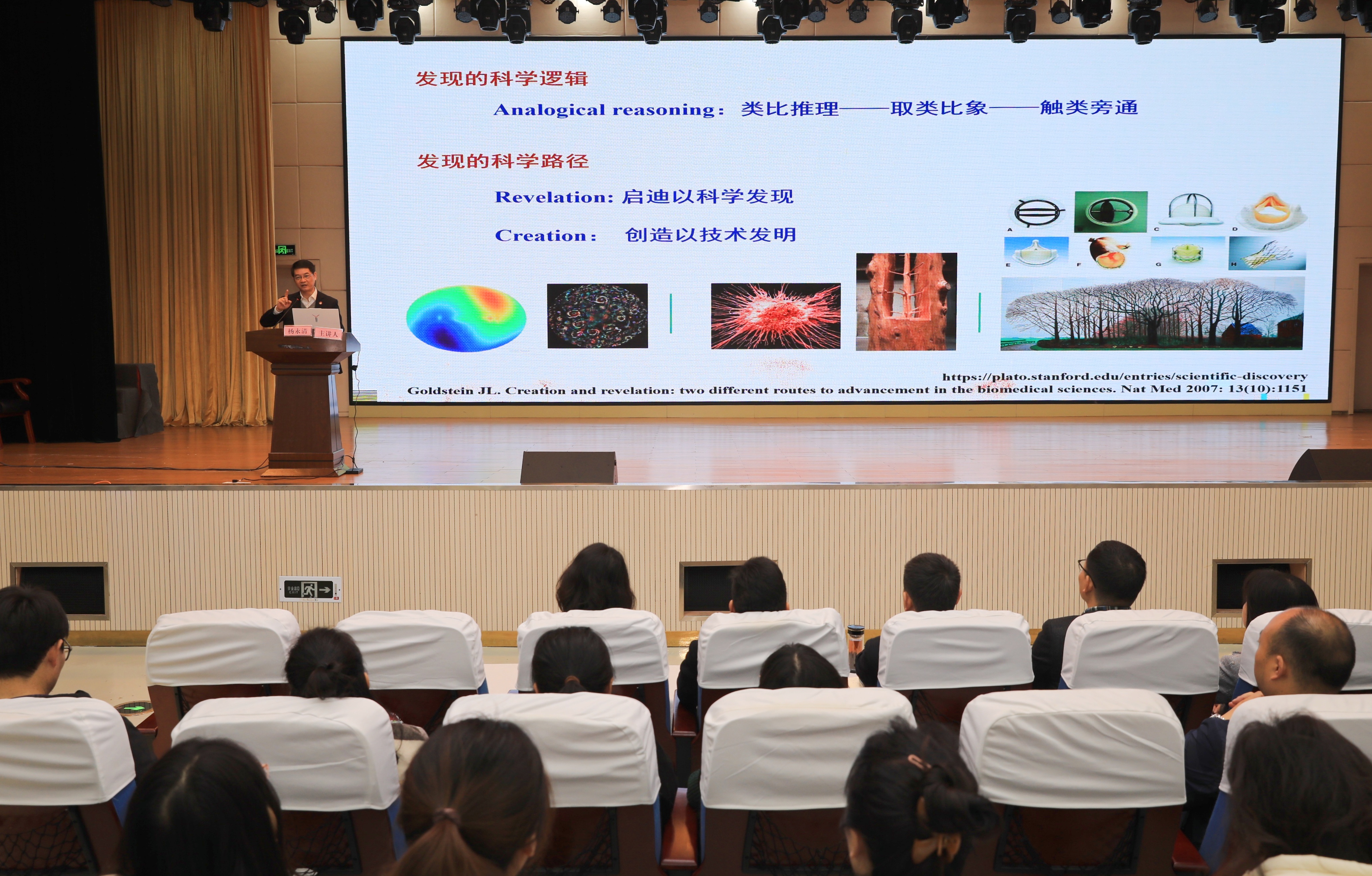 杨永清教授从“学习习近平总书记中医药重要指示;正本清源、传承精华;阐幽明微、守正创新;展望未来—中国新医学”四个方面,带领大家重温了习近平总书记关于中医药工作的重要论述和指示精神,详细介绍了中医药古籍相关理论、数据在不同时期的定义和内涵;全面阐述了“正本清源,传承精华”与中国医学科学的辩证关系;还通过屠呦呦发现青蒿素和中医研究的相关事例讲述了“阐幽明微,守正创新”是探究中国医学生命科学的途径。