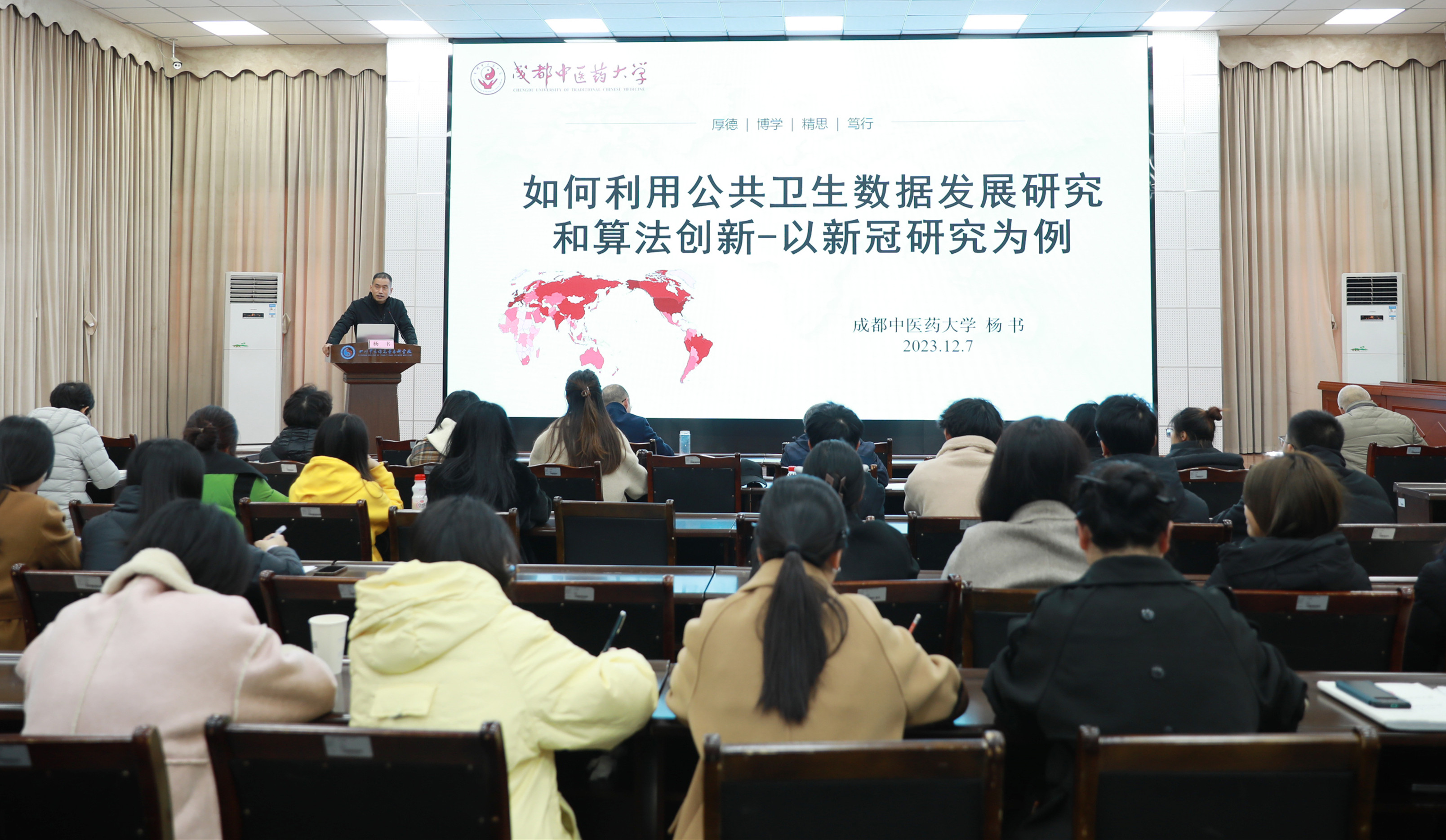 12月7日,中国中医药信息学会人工智能分会理事、成都中医药大学智能医学学院杨书教授受邀来我校开展《如何利用公共卫生数据发展研究和算法创新——以新冠研究为例》专题学术讲座,帮助我校师生进一步提升临床和基础科研数据分析能力。