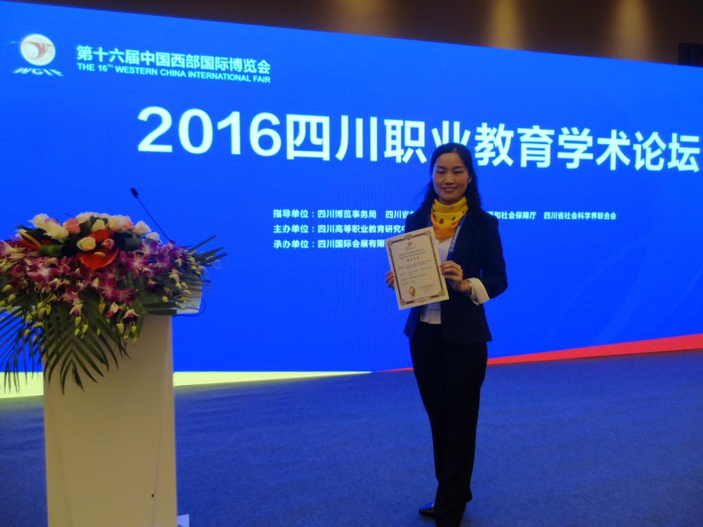 11月4日上午,第十六届中国西部国际博览会暨2016年四川职业教育国际博览会在成都国际会展中心召开。在博览会分论坛四川职业教育学术论坛上,我校《高职高专护理专业学徒式岗位人才培养研究与实践》研究项目(吴学华、段艮芳、何海艳、谢玉先、王金玉)获四川省高等职业教育研究中心首届科学研究优秀成果二等奖。此次评奖全省职业院校共申报项目102项,评选获奖项目26项,其中一等奖3项,二等奖10项,三等奖13项。