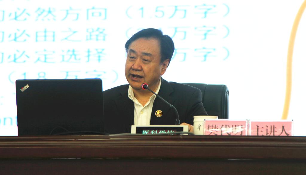 此次樊代明院士做了题为《医学的系统论与整合观》的专题报告。全体校领导、中层干部、全体教职工以及部分学生代表共同听取了报告,报告会由副校长先德强主持。