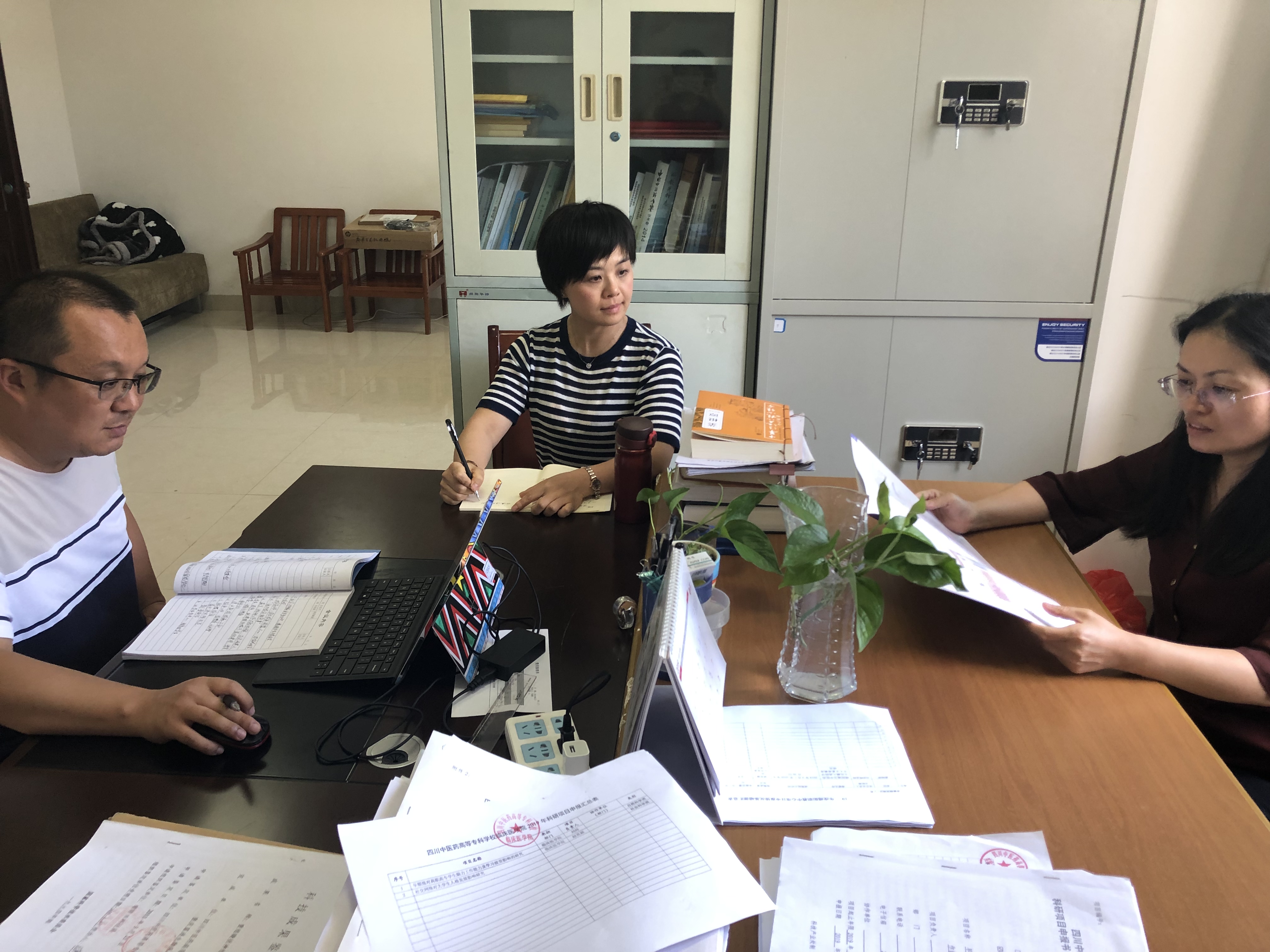 2019年6月3日,四川中医药高等专科学校科技外全体成员在段艮芳处长的带领下学习教育部关于高校教师师德失范行为处理的指导意见。大家深刻学习了高校教师师德失范行为处理意见,为进一步规范高校教师履职履责行为,落实立德树人根本任务,弘扬新时代高校教师道德风尚,努力建设有理想信念、有道德情操、有扎实学识、有仁爱之心的高校教师队伍,高校教师要自觉加强师德修养,严格遵守师德规范,严以律己,为人师表,把教书育人和自我修养结合起来,坚持以德立身、以德立学、以德施教、以德育德。发生师德失范行为,本人要承担相应责任。段处长强调并提醒大家,高校教师师德失范行为实行“一票否决”。高校教师出现违反师德行为的,根据情节轻重,给予相应处理或处分,轻则给予批评教育、诫勉谈话、责令检查、通报批评,以及取消其在评奖评优、职务晋升、职称评定、岗位聘用、工资晋级、干部选任、申报人才计划、申报科研项目等方面的资格。同时,对师德失范行为的处理,坚持公平公正、教育与惩处相结合的原则,做到事实清楚、证据确凿、定性准确、处理适当、程序合法、手续完备。