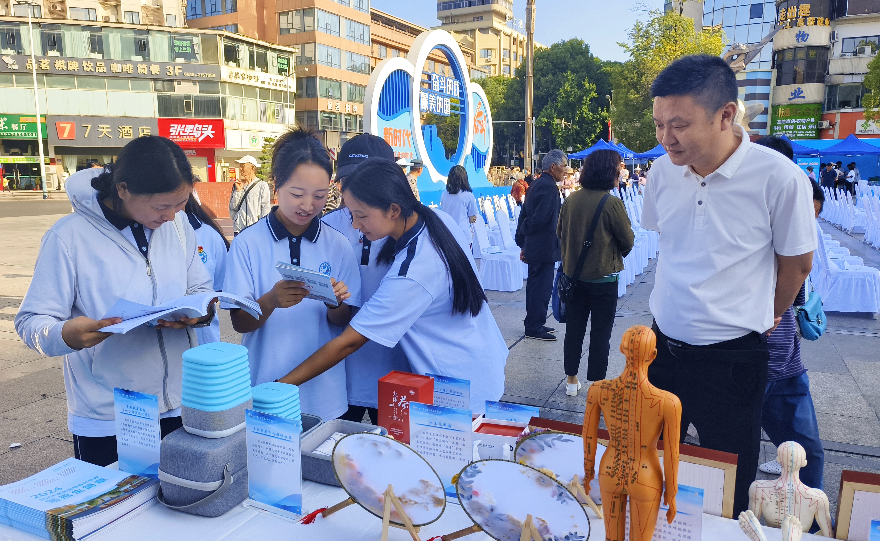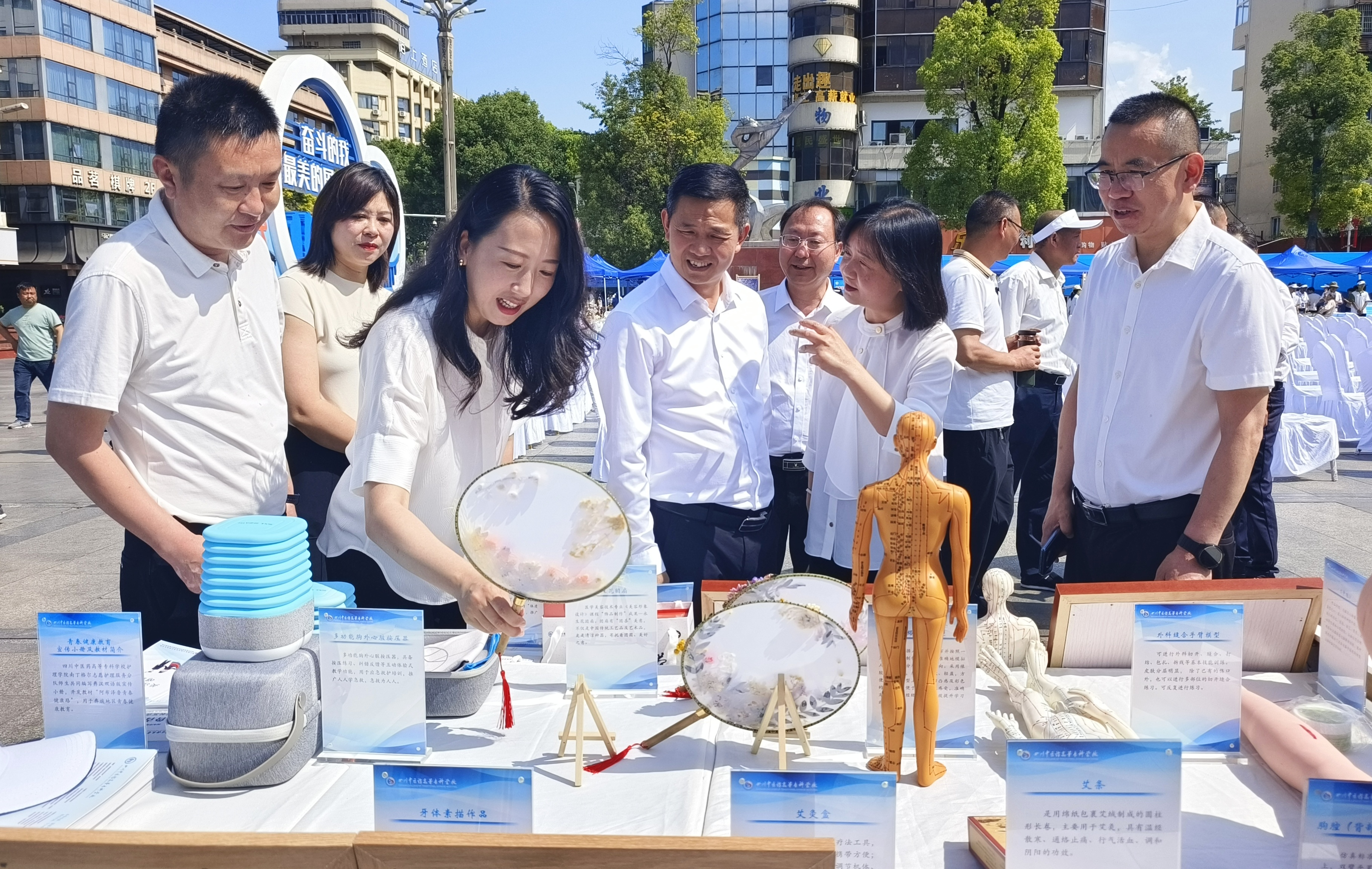 我校高度重视此次活动,相关职能部门和学院精心准备筹划,展出了经络腧穴模型等教学道具、学生制作的中药标本等作品,以及我校专家为在绵院士量身定制的“明月光耀”药膳食谱、与成都中医药大学共同研发的“九体茶”等展品,充分展示了学校近年来在产教融合、校企合作、教学科研等方面取得的成果。活动现场,市委教育工委副书记、市教体局党组书记、局长王永昭等各级领导、嘉宾到我校展区参观,对我校的办学成果给予充分肯定和好评。