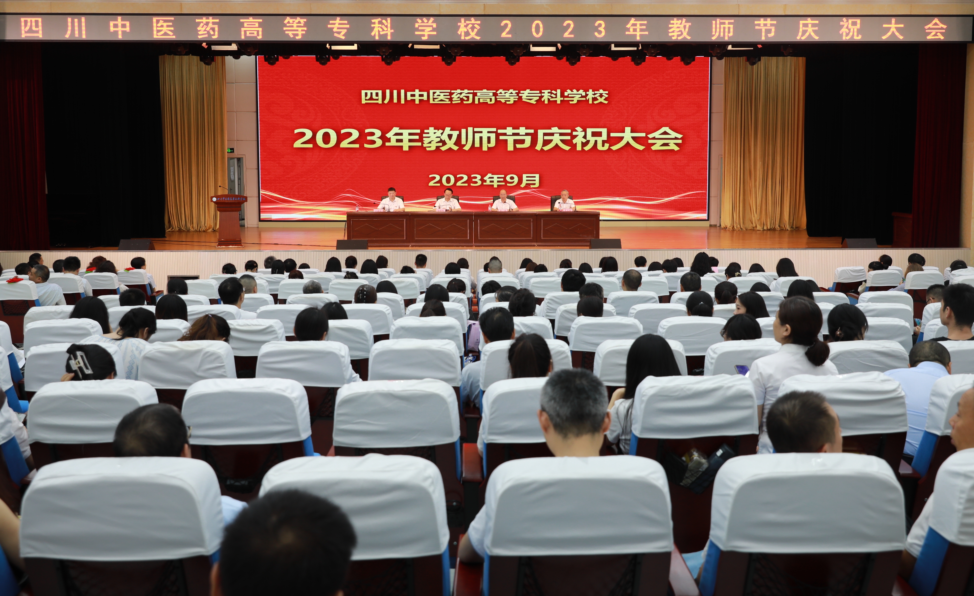 9月8日,我校举行教师节庆祝大会,校党委书记秦晓明、党委副书记汪涌泉、纪委书记李文虎,获奖教师代表、各学院、职能部门负责人,教师代表、学生代表等300余人参加大会。校党委副书记、校长李祥主持大会。