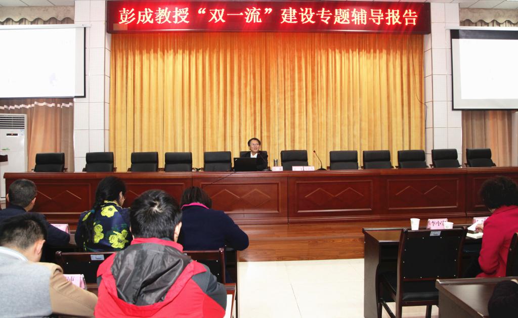 11月16日下午,成都中医药大学二级教授、博士生导师彭成副校长应邀来我校作了题为“世界双一流学科建设的思路与实践探索”的辅导报告。报告会由高等医学教育研究与发展中心主办,我校管理干部、附属中医医院、西南科技大学及绵阳职业技术学院代表共100余人聆听了报告。副校长金虹教授主持报告会,校长王飞教授对彭成教授取得的重要研究成果进行了介绍。