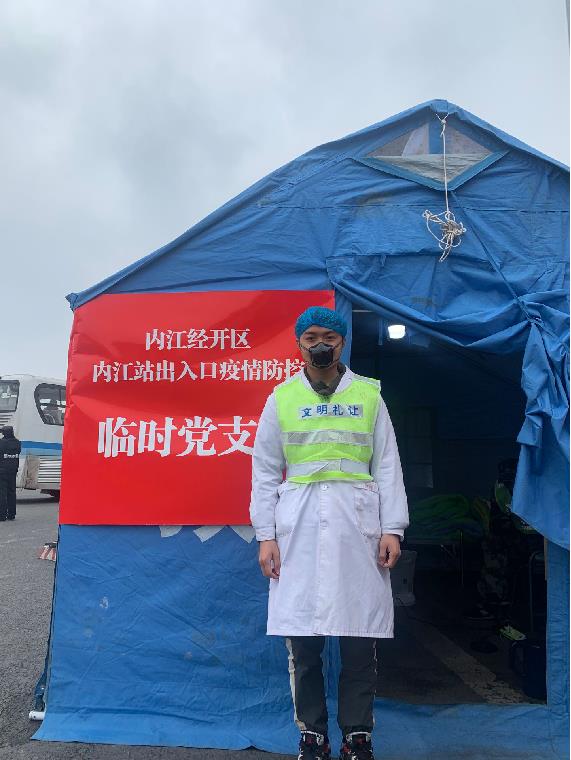 付粤新,2017级普专护理专业,四川大学华西广安医院实习生。他主动向实习单位递交了进入抗疫一线工作的志愿申请,并于2月2日如愿以偿成为感染科B区志愿者;他不仅在工作中严谨认真细致,悉心照顾患者的同时严防职业暴露、预防感染,还为遏制疫情扩散、为夺取防控斗争胜利贡献了青年力量。