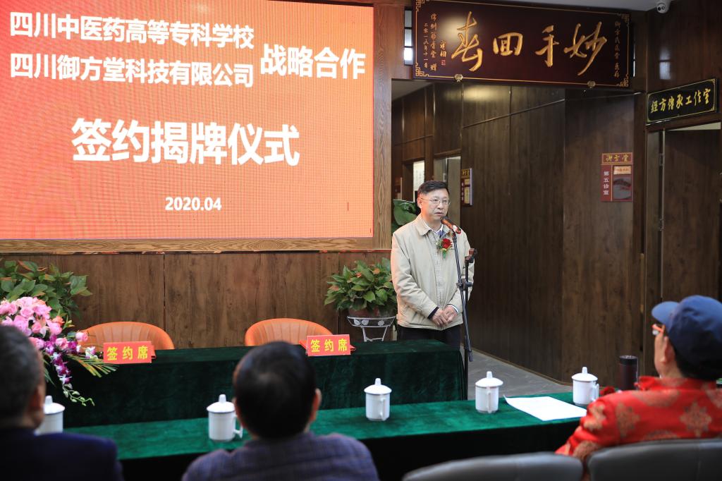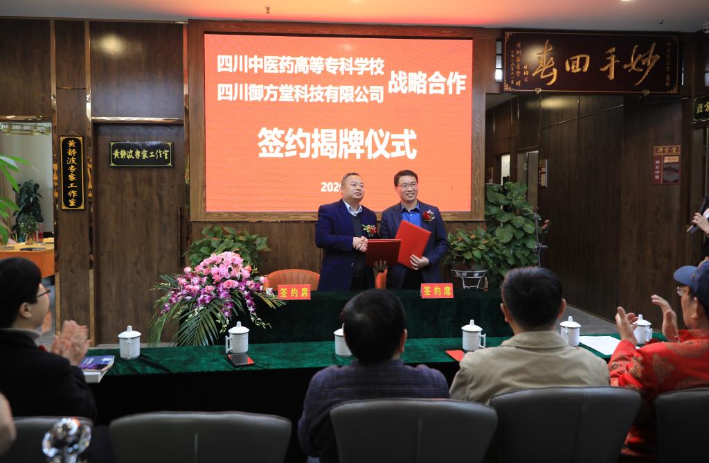 4月23日,我校与四川御方堂科技有限公司签订战略合作协议,双方将在中医药诊疗、卓越人才培养、产学研示范基地建设、成果转化等方面开展深度合作。校长王飞、副校长商碧辉,市中医药学会会长李培,御方堂董事长顾洁、名老中医黄静波及相关部门负责人参加了签约仪式。