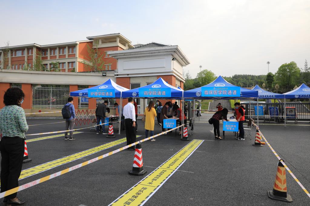 学校高度重视此次演练工作,成立指挥部,下设11个工作组,分别为综合协调组、物资准备组、宣传报道组和8个演练场景工作组,精准施策、严密部署。演练现场,全体人员佩戴口罩,相关学院人员在各自报到点就位等待,安保人员负责维持秩序。“学生”到达学校后,由工作人员引导有序排队等候,逐一通过消毒区、体温测验区、资料审查区、红外线测温门,进入校园,并在统一组织下分流回宿舍。校医院医护人员、消杀人员现场随时待命。除入学报到模拟外,本次演练还进行了宿舍管理(应急处置)、隔离区留观、进入教学区、异常情况应急处置、进入实验楼、进入图书馆以及食堂用餐等各个场景的全流程、全方位、全仿真的模拟演示。演练结束后,学校召开了演练效果评估总结会,对演练环节中需要进一步优化的环节进行了认真梳理和总结,提出相应的进一步优化措施,确保学生返校报到流程有序、协调、顺畅,突发事件应对及时、高效、有力,物资预备调配迅速、全面、到位。