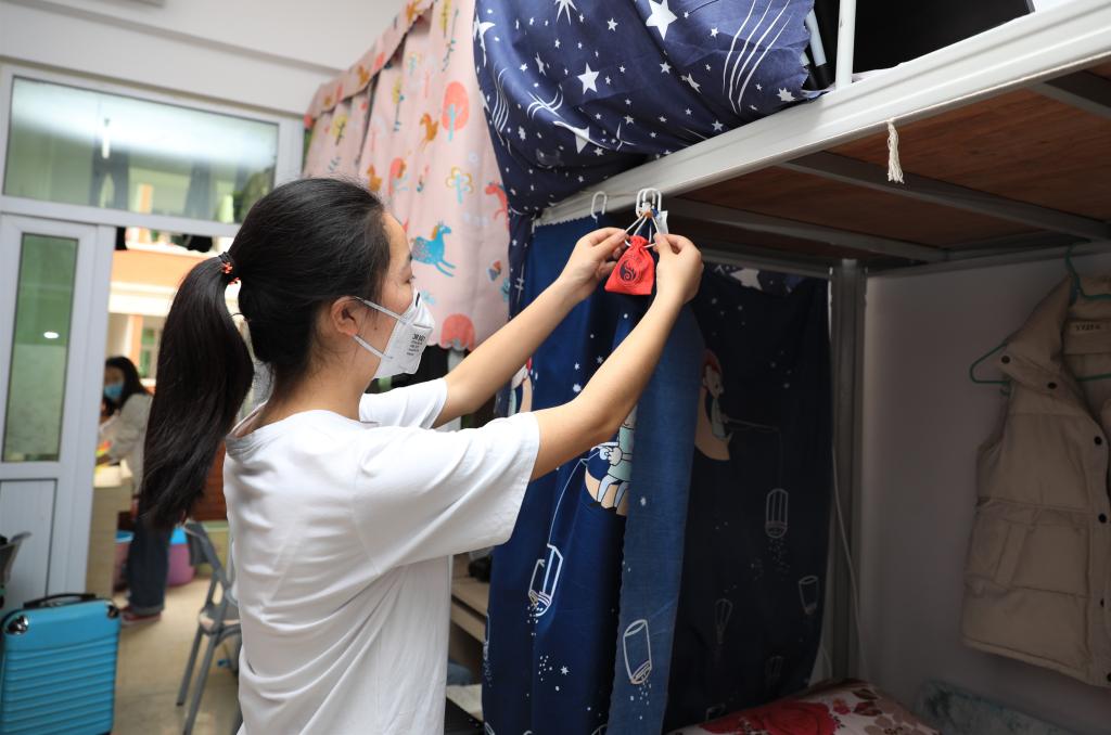 “返校离家的时候家长还有点担心,我们进入校园回到宿舍就收到了学校给我们每个寝室精心准备的健康包,感觉很暖心,学校准备这么充分,家里知道了也觉得很放心。”护理学院学生黄思蕾说。