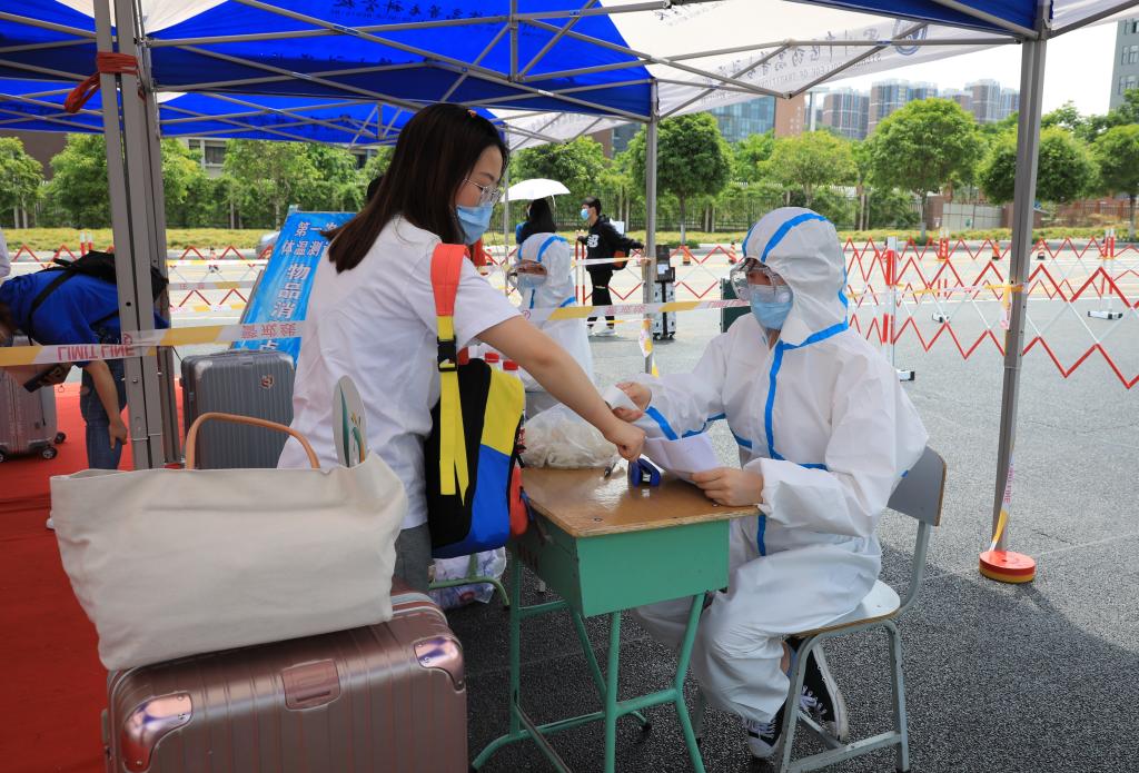 5月20日,我校2020年春季学期首批1700余名学生开始有序返校报到,离开校园4个多月的学子们在工作人员引导下,依次通过体温初测、物品消毒、资料审核、体温复测等流程后进入校园。