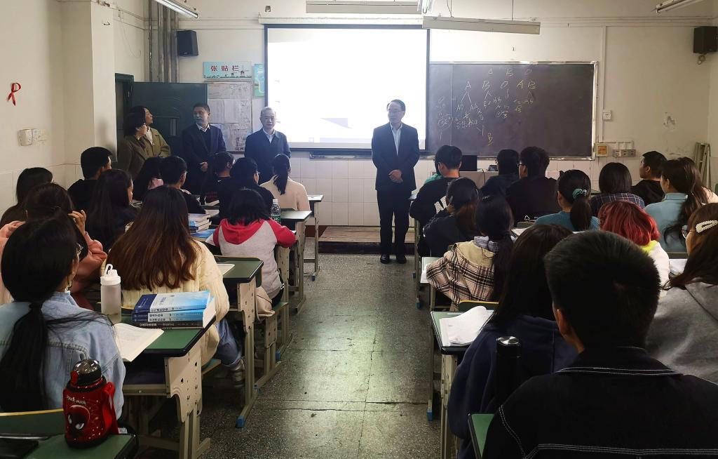 4月7日,校党委书记秦晓明、纪委书记李文虎带领相关部门负责人看望了在泸州疾控中心学习的2019级卫生检验与检疫专业学生。