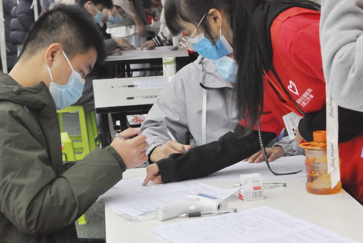 为严格落实疫情防控措施,献血车进校园活动中所有工作人员持48小时内核酸检测阴性证明进校;献血填表点、采血点、献血车内均配备消毒液和医用口罩;活动现场所有献血者均佩戴口罩、出示绿色健康码、填写登记表,同学们自觉排队并保持前后1米的距离,严格落实防疫要求。