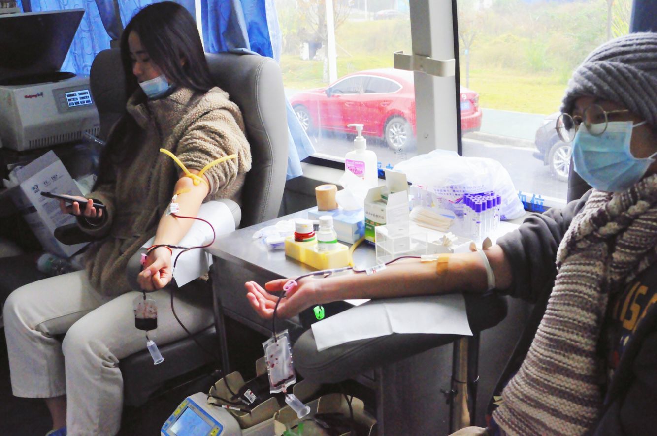 2021年11月13日上午,我校献血队(绵阳市无偿献血志愿服务大队医专分队)在北校区开展了“热血同行,众心抗疫”献血车进校园活动,当天共计245名学子献血,献血量达63300毫升,为我市血液供应保障工作贡献了青春力量。