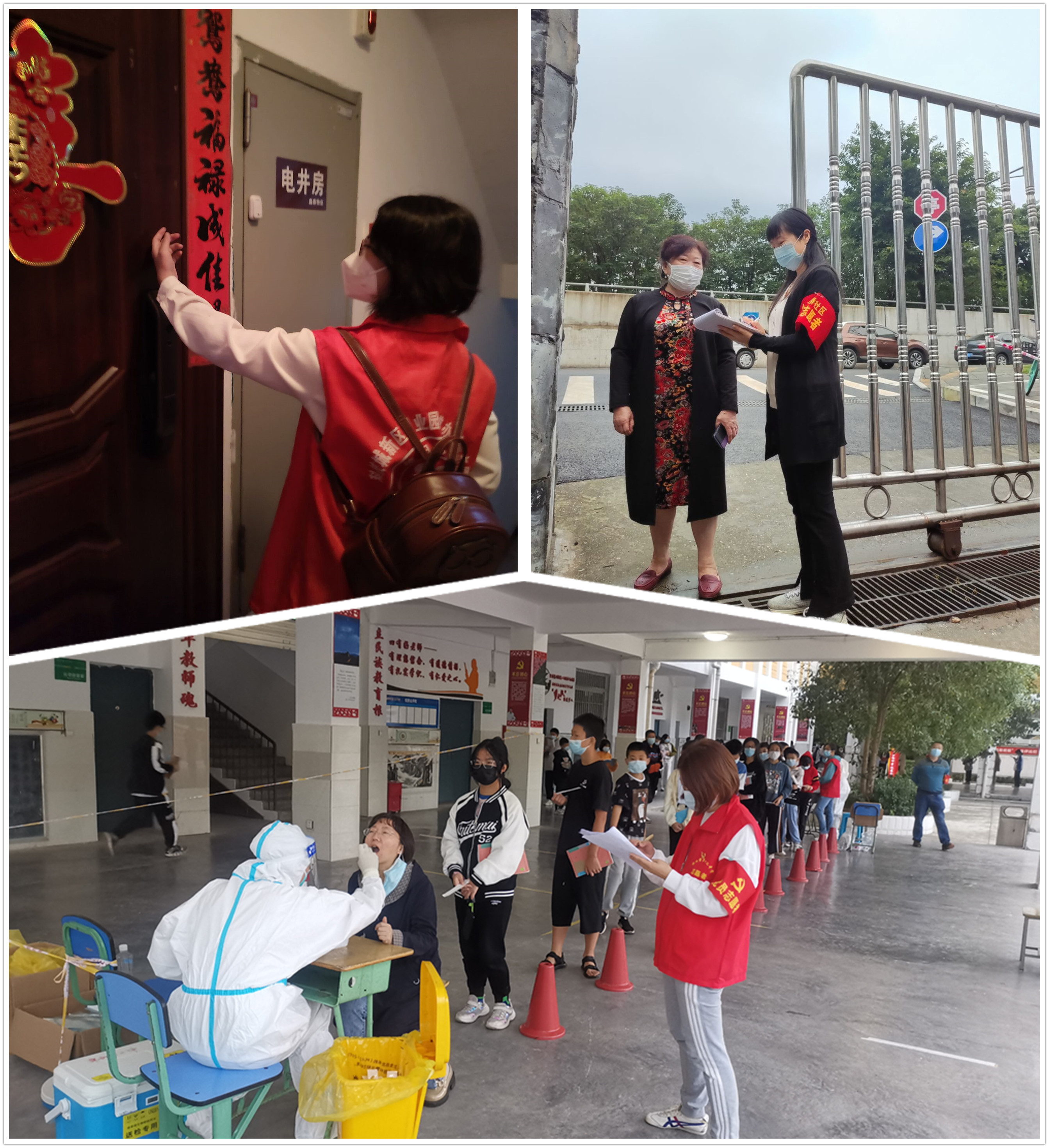 疫情发生后,护理学院党总支积极响应学校号召,全体党员主动请缨参与抗疫志愿服务工作,穿上“红马甲”戴上志愿者“红袖章”,逐户通知居民做核酸,登记核酸检测人员信息,维持现场秩序,并参与小区人员进出管控与登记,助力疫情防控工作。