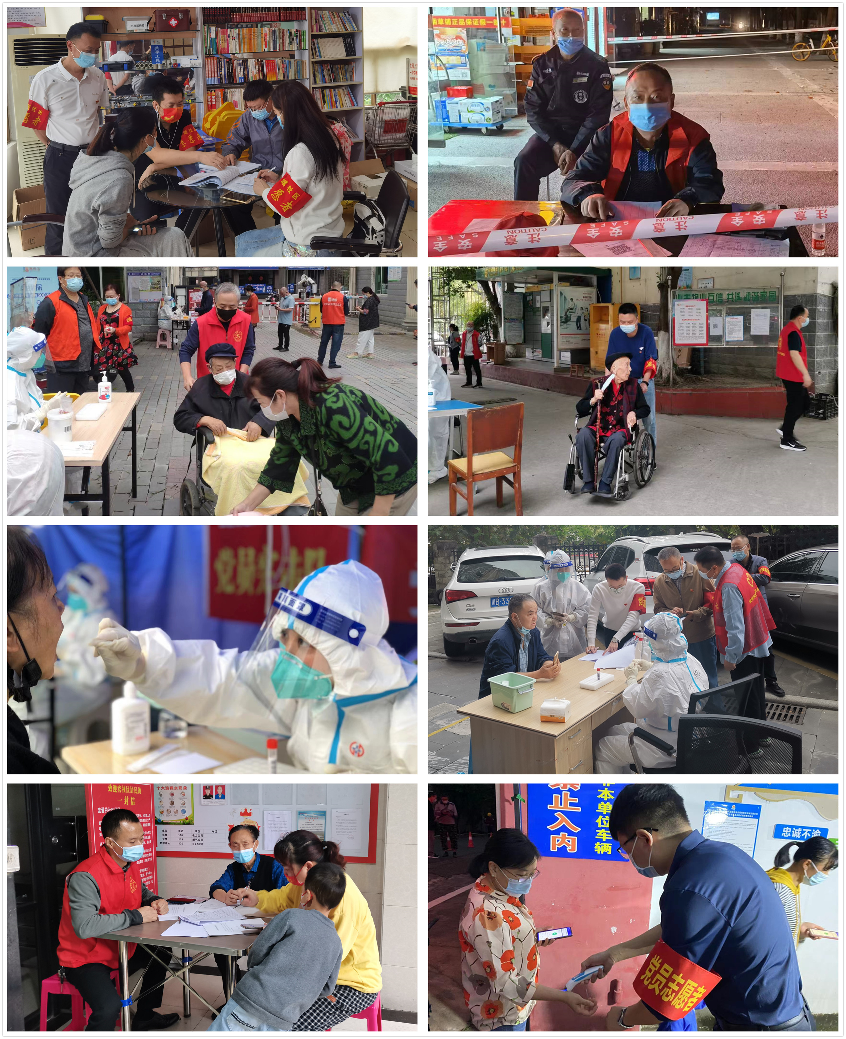 教学教辅党总支全体党员响应号召,主动请缨,积极投身于疫情防控工作,协助医护人员、社区工作人员做好核酸检测采样,负责扫码系统登记、维护现场秩序、缓解居民焦虑情绪等,为打赢这场疫情防控歼灭战贡献着自己的力量。
