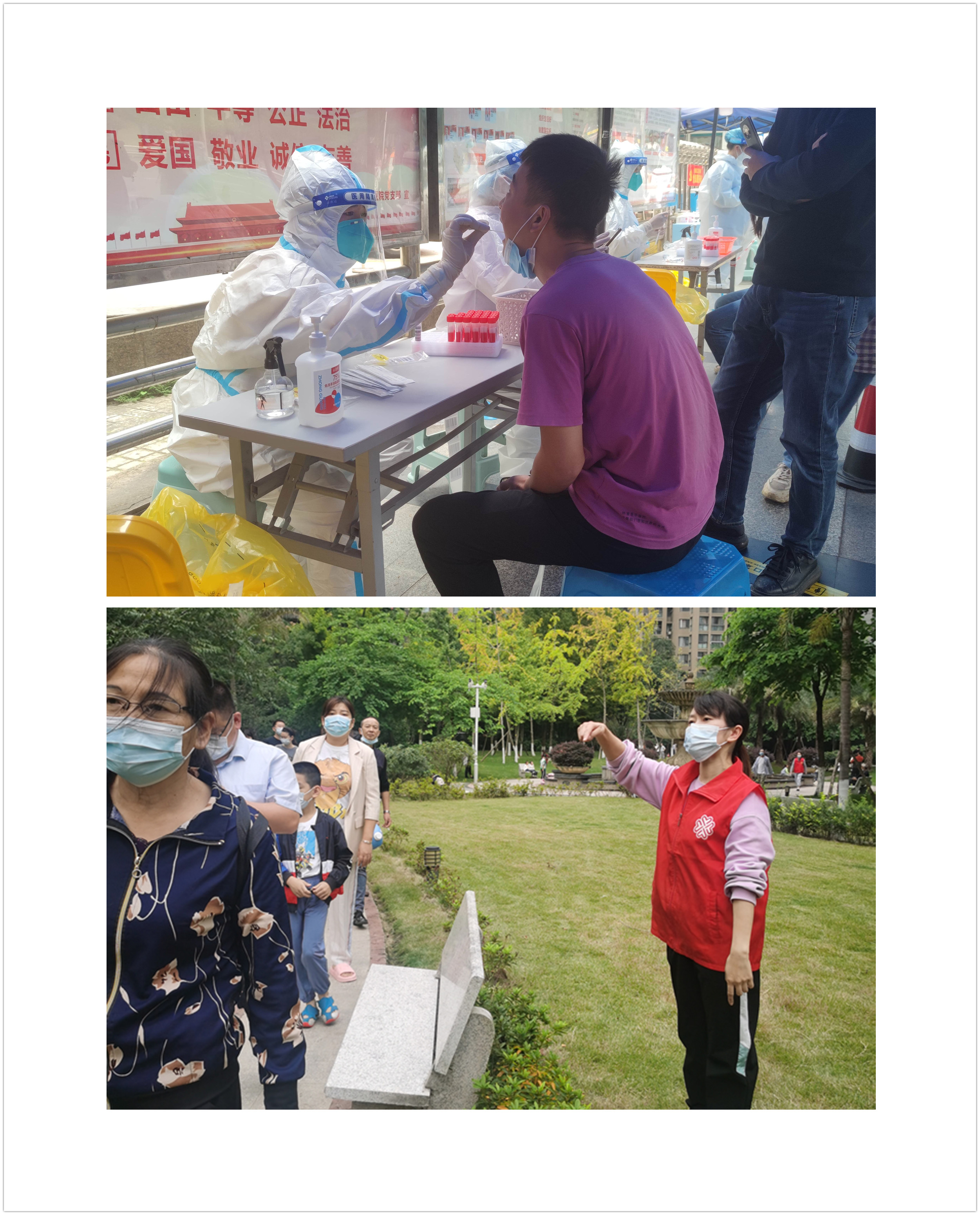 临床医学院党总支充分发挥党员同志的先锋模范作用,积极参与社区志愿服务,协助社区防控人员进行住户人员信息排查登记,建立业主服务微信群提醒居民进行核酸检测,在核酸检测点扫描健康码、做好楼栋号门牌号等备采信息登记等,倾情奉献在疫情防控第一线。