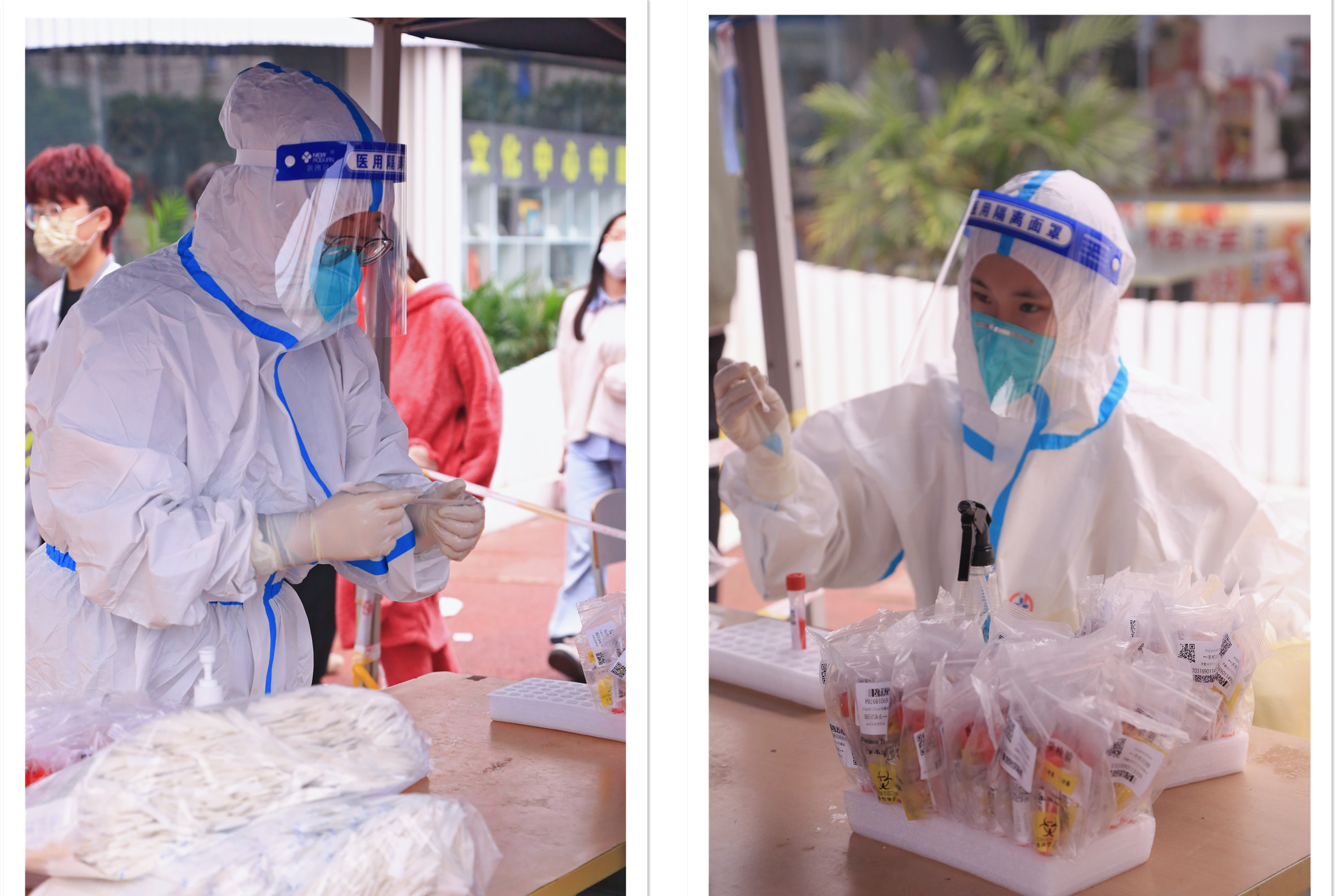 校内师生坚持每日进行核酸检测,医护人员、志愿者、安保人员、参检师生高效联动,检测现场秩序井然。
