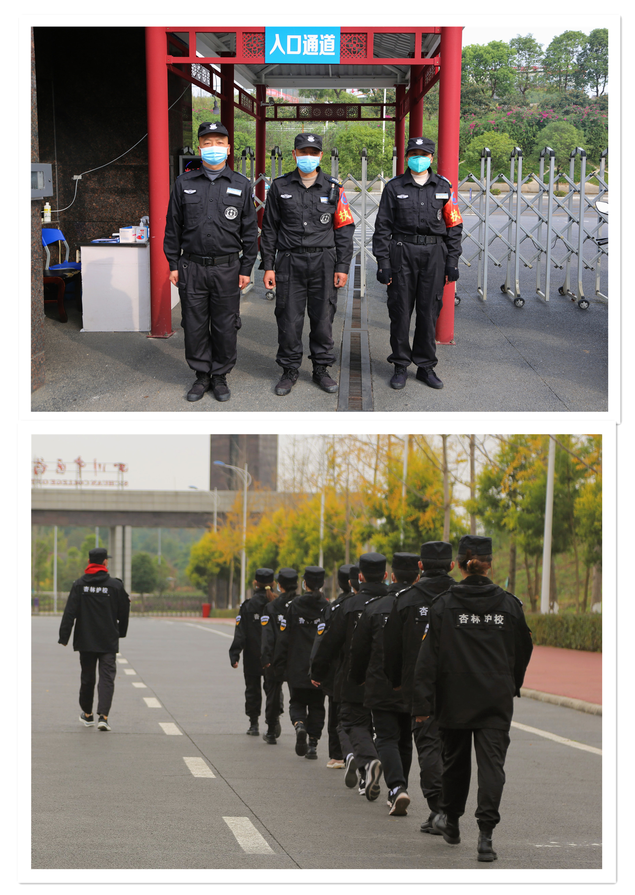 校武装保卫处关口前移、多措并举,确保校内安全稳定和疫情防控措施落实到位。为切实做好相关安全保卫工作,由学生组成的“杏林护校队”与安保人员一起,每天加强对校园重点部位的巡逻,排查安全隐患,让师生在校园里安心有序地开展工作、学习和生活。