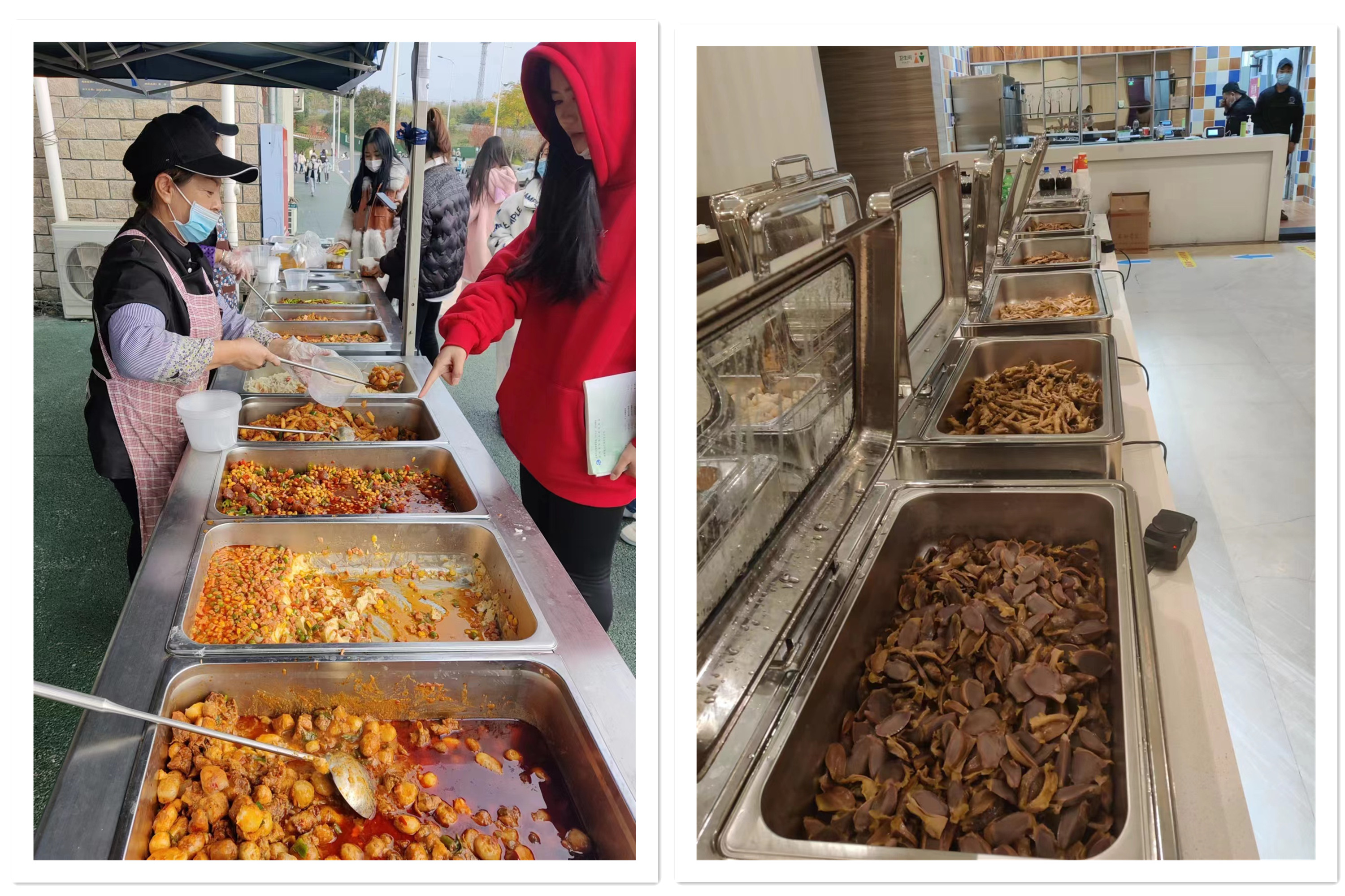 南北校区食堂结合师生的喜好准备了丰富的菜品种类,提供安全卫生、营养均衡的食物,在保障一日三餐的同时还为师生提供特色餐饮服务。