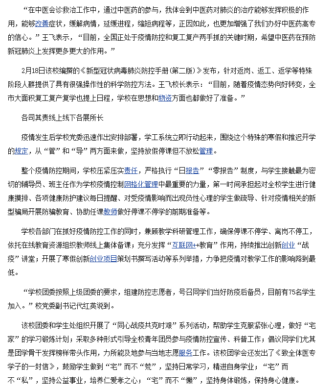 媒体报道 当前位置: 首页 >> 媒体报道 >> 正文 东方财富网:四川中医药高专在疫情大考中展现担当作为 发布日期:2020-03-09 点击: 链接地址: 上一篇:绵阳观察:四川中医药高专汇聚校友力量共战疫情 下一篇:绵阳日报:四川中医药高专在疫情大考中展现担当作为