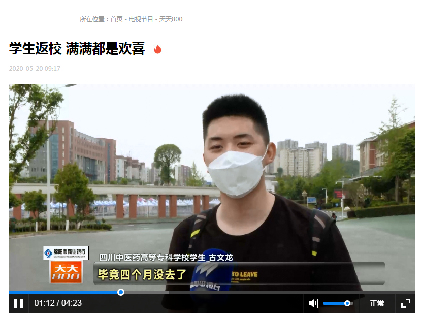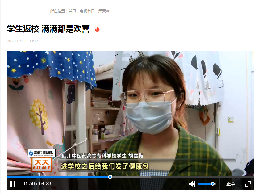 【同期声】四川中医药高等专科学校学生 胡婧祎 大二要出去实习了 还有很多实践的没有落实下来 自己心里面很期待开学 然后今天终于开学啦