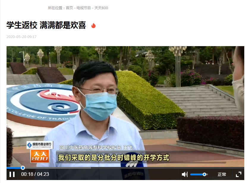 【同期声】四川中医药高等专科学校校长 王飞 我们采取的是分批分时错峰的开学方式 有充分的信心把开学工作做好