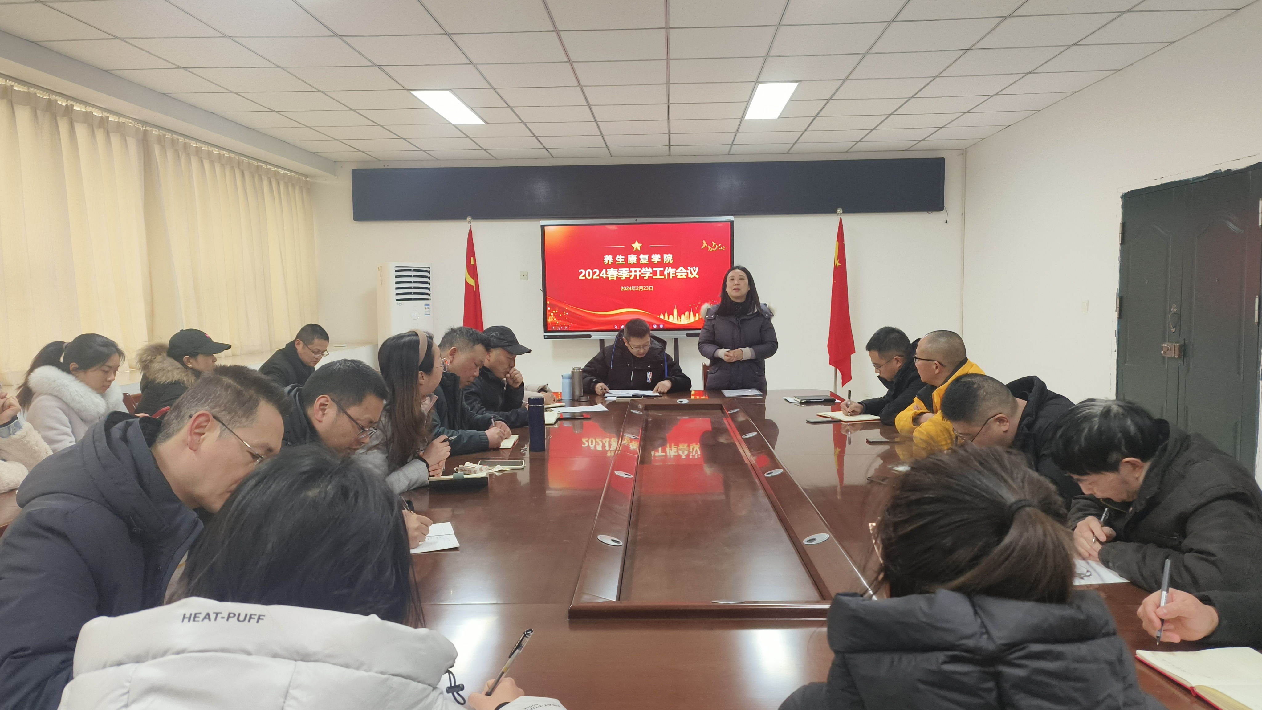 2月23日,我院2024年春季学期开学工作会议在西校区二楼党员活动室召开。会议开展了新学期师德师风专题教育,同时对开学工作进行了安排部署,副院长任植艺同志主持本次会议,学院全体教职工参加。