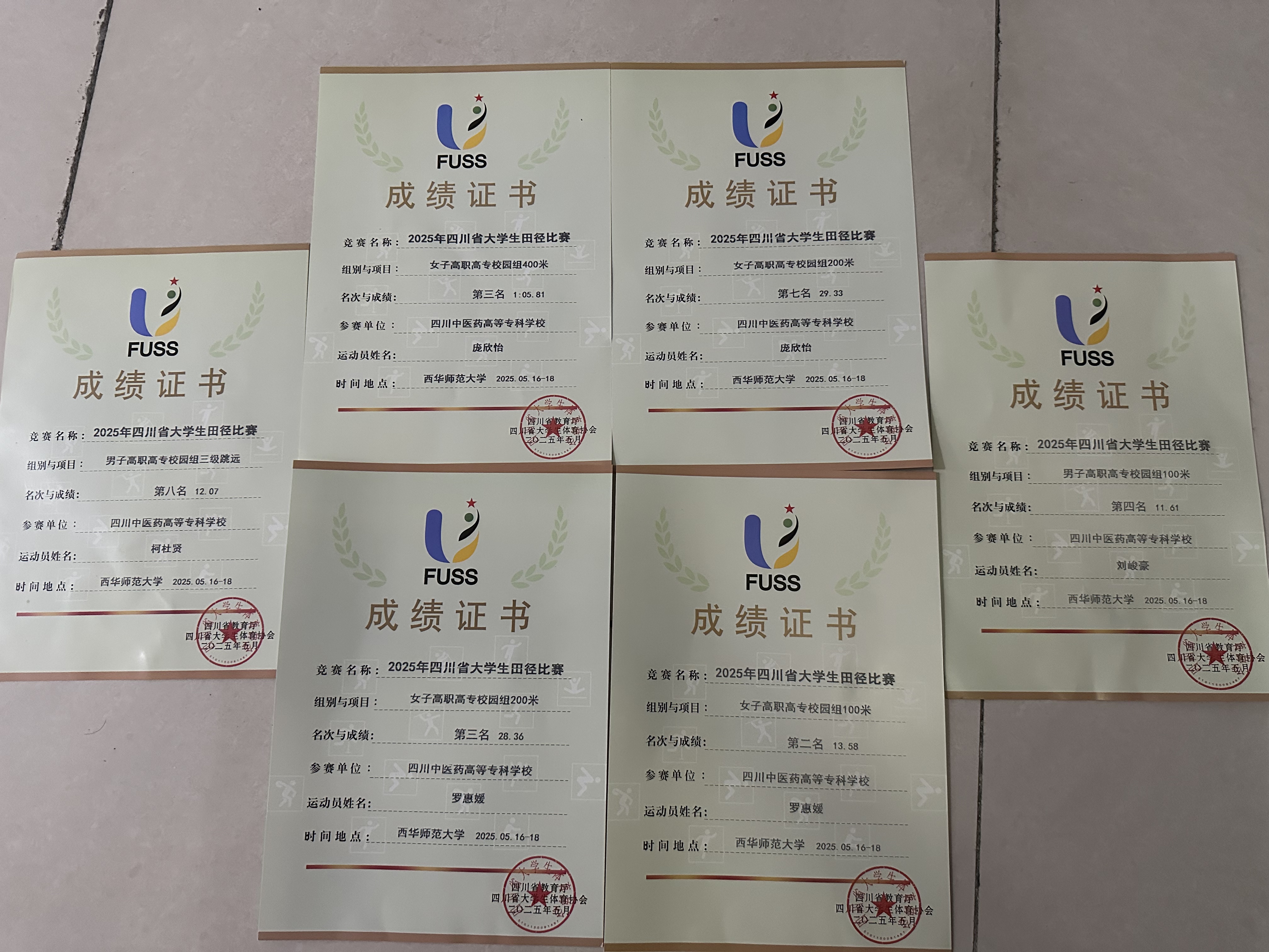 此次比赛由四川省教育厅主办,共吸引来自全省101所高校的1400余名运动员参赛(高职代表队55支)。来自我院2024级体育健康与保健专业的罗惠媛等7名同学在赛场上顽强拼搏、奋勇争先,分别获得了全省高职高专校园组女子100米第二名、女子200米第三名、女子400米第三名、男子100米第四名、女子200米第七名、男子三级跳第八名的优异成绩。