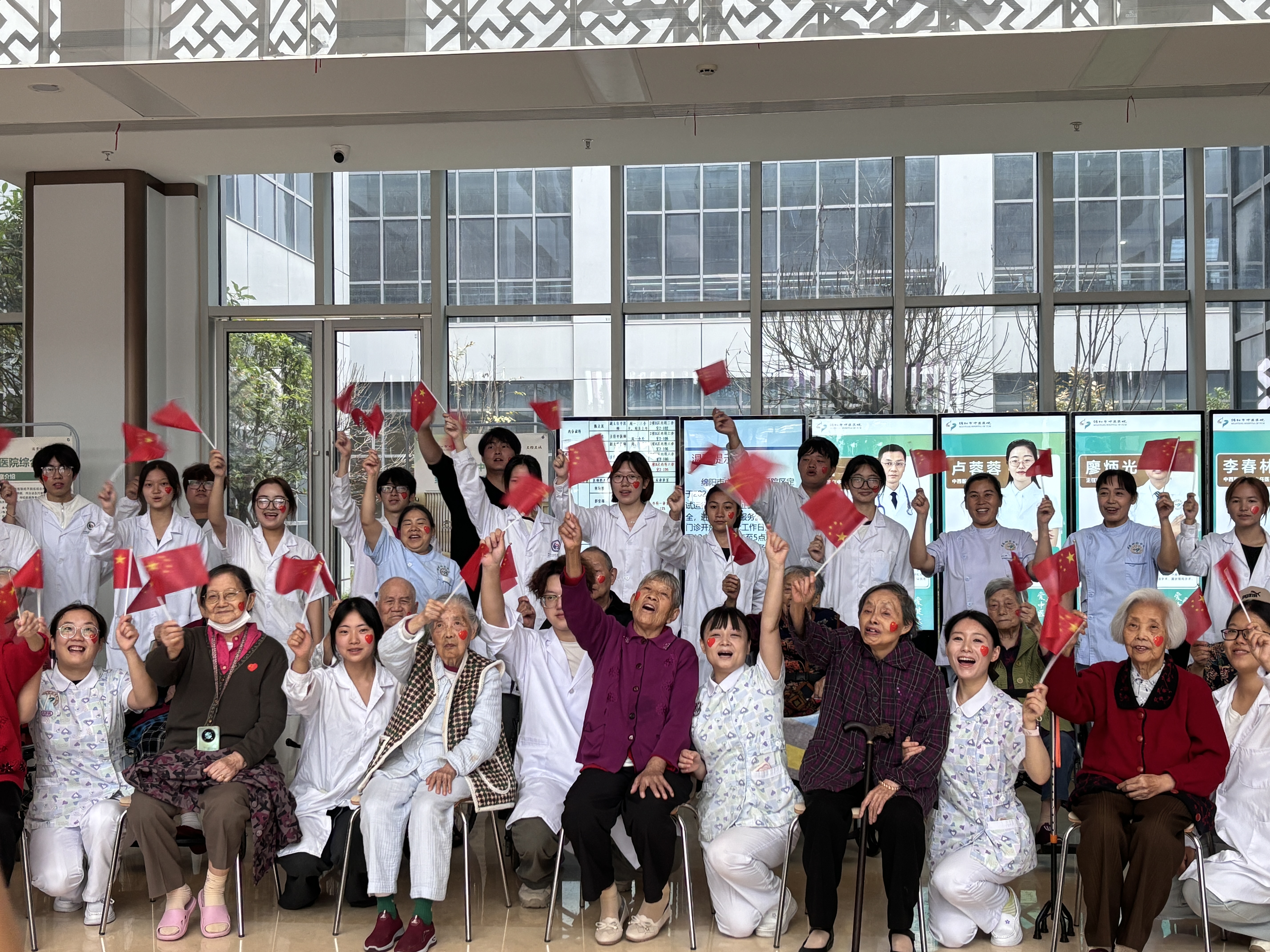 金秋送爽,丹桂飘香!2025年9月29日,在中秋与国庆双节来临之际,为传承中华民族敬老、爱老、助老的传统美德,提升智慧健康养老与服务专业学生的实践能力,我院2024级智慧健康养老与服务班的同学们携手附属医院/绵阳市中医医院的老师们,在经开院区实训中心精心策划并开展了一场主题鲜明、温馨满满的敬老活动。学院党总支书记刘成、副院长王巧利出席活动,与师生和老人们亲切交流,共同为老人们送上节日的祝福与关怀。