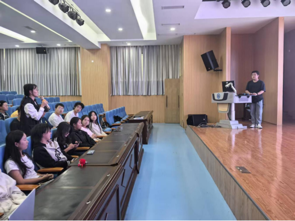 本次活动别开生面,特邀在“挑战杯”赛事中拥有丰富经验并取得优异成绩的双创学院刘杨洋老师担任主讲,为怀揣科创梦想的同学们带来了一场干货满满的“及时雨”。刘老师结合自身多次参赛并获奖的实战经历,从“道、法、术”三个层面进行了毫无保留地分享。“道”之层面:解析赛事内核;“法”之层面:梳理备赛流程;“术”之层面:传授实战技巧。在互动环节,刘老师更是分享了诸多“独门秘籍”,例如如何让自己的项目书在海量作品中脱颖而出,如何在答辩环节从容应对评委的“犀利”提问,以及如何调整心态、应对挑战等。他风趣幽默的语言和真实生动的案例,引得现场掌声与笑声不断。