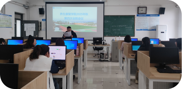 2025年11月14日下午,养生康复学院在北园2号实验楼的2-3-4教室,组织召开了2025年秋季学期第四次全院教职工会议,会议由学院党总支书记何海艳主持,学院全体教职员工参加。