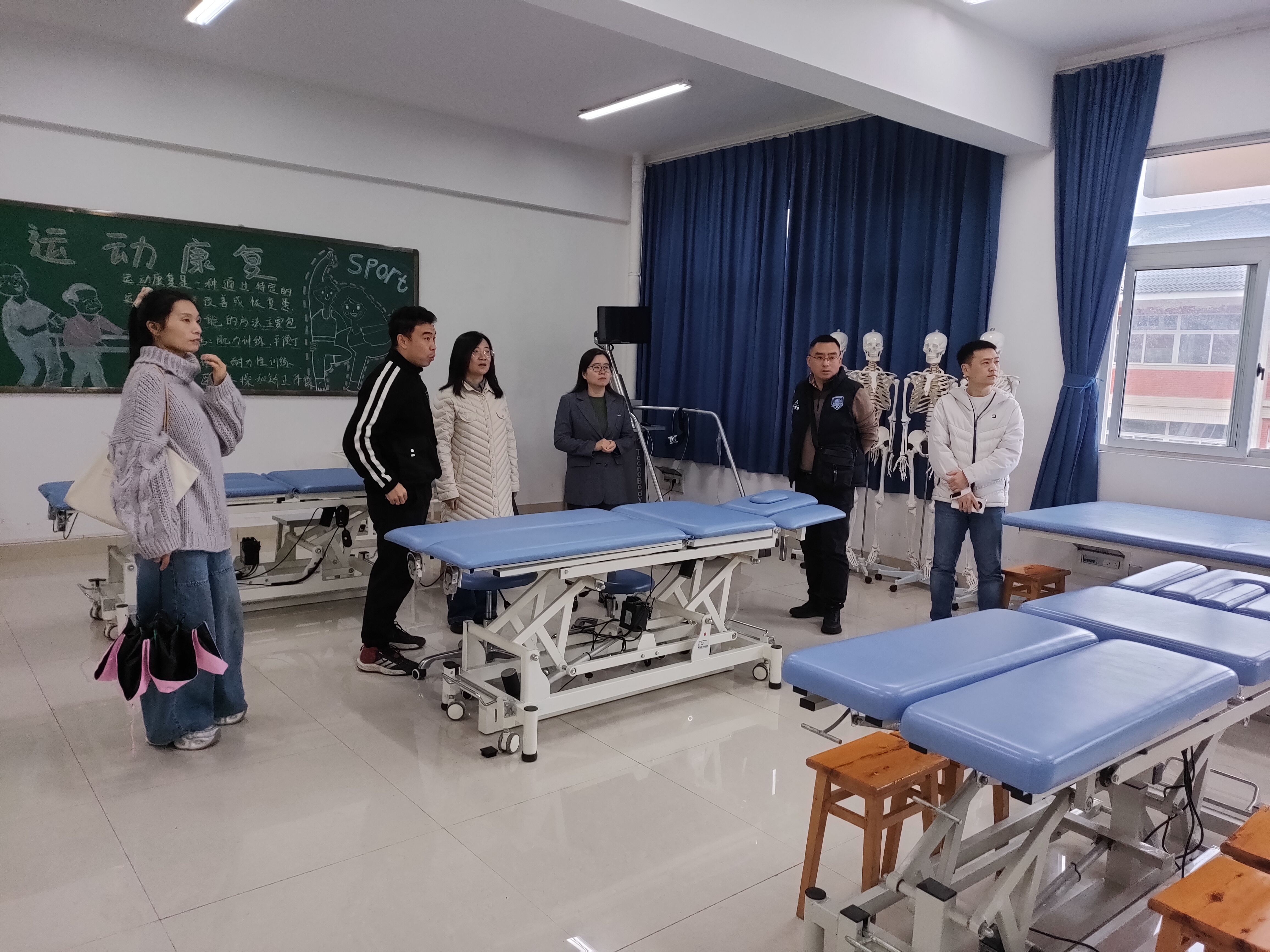调研团队实地参观了我校康复治疗技术、体育保健与康复专业实训室,详细了解实训室的规划布局、设备配置标准与日常管理模式。双方围绕实训室设置、训设备的种类选型、数量配比及维护机制等议题进行了深入探讨。李鸾主任对我校实训室建设的标准化与专业化水平给予了高度评价。