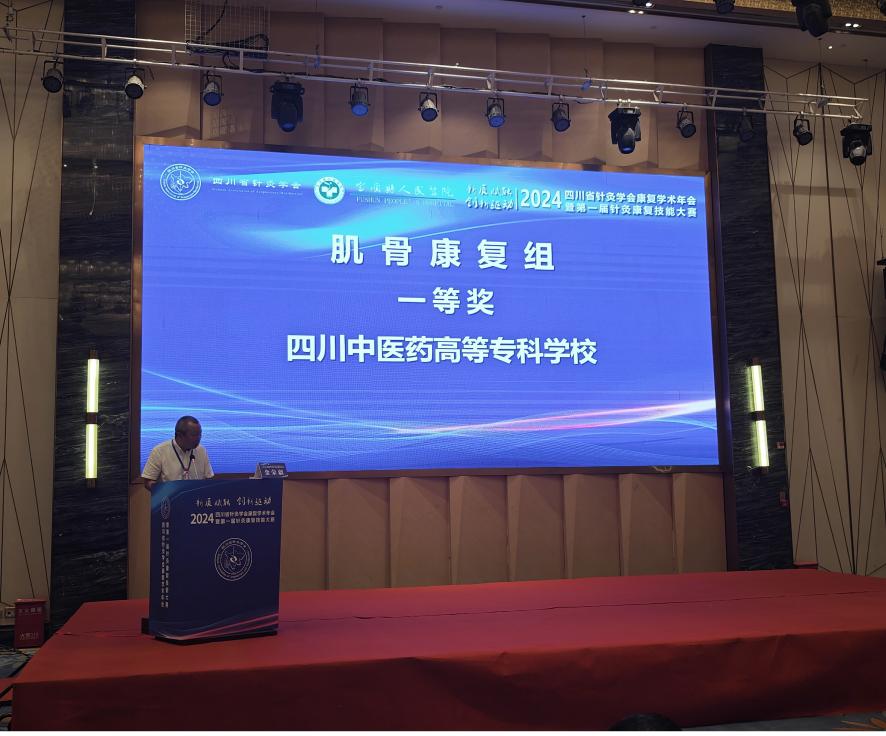 2024年7月26日,四川省针灸学会康复学术年会暨第一届针灸康复技能大赛于自贡市富顺县盛大举行,我院教师团队凭借卓越的专业技能和团队协作精神,在激烈的竞争中脱颖而出,荣获肌骨康复组一等奖,税晓平老师获康复之星个人奖。