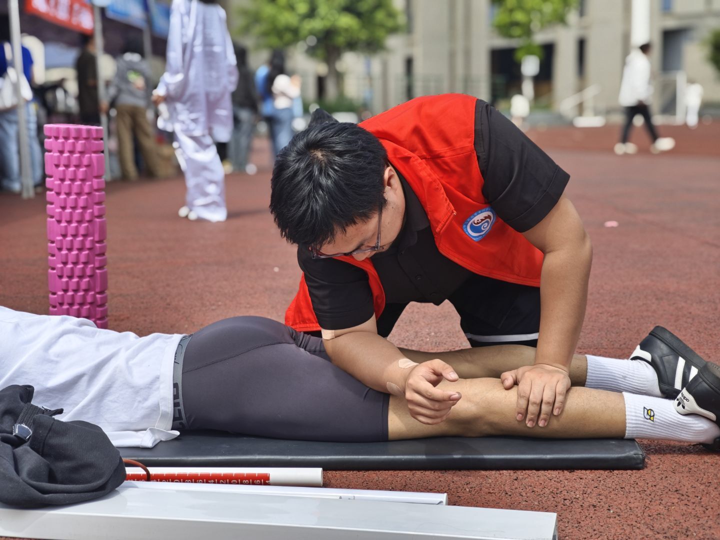 运动防护服务站以“生命至上”为宗旨,将医学康复技术与体育科学深度融合,不仅为校运会提供了坚实的安全保障,更通过实际行动向师生传递“健康第一”的理念。其专业素养与暖心服务赢得参赛选手及组委会的高度评价,成为校运会中彰显人文关怀与学科特色的靓丽名片。